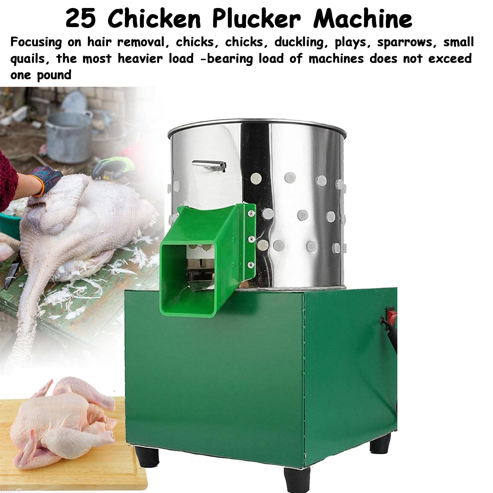 Schluss mit mühsamem Rupfen! Diese elektrische Hühner-Rupfmaschine macht die Arbeit zum Kinderspiel. Einfach anschalten und die Federn werden schnell und sauber entfernt - ohne das Fleisch zu beschädigen.