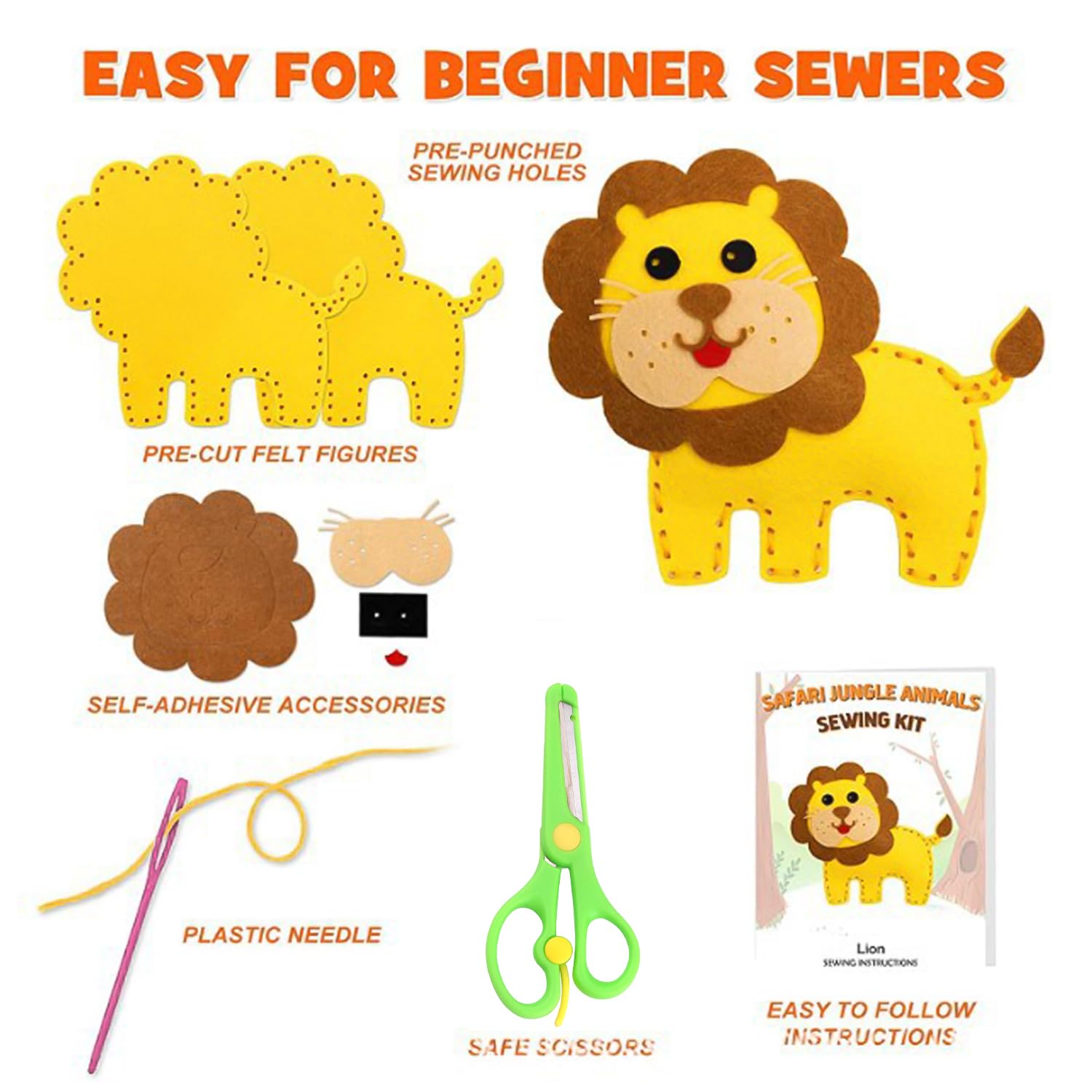Perfekt für erste Nähversuche - die Filzteile sind schon vorgeschnitten und vorgebohrt. Fördert Feinmotorik, Konzentration und Kreativität. Und das Beste: Am Ende entstehen süße Plüschtiere zum Spielen!
