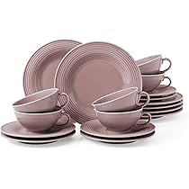 Morgens aufstehen macht mit diesem fröhlichen Frühstücksset gleich doppelt Spaß! Seltmann Weiden hat mit der Beat-Serie echt was Besonderes geschaffen: Das Porzellan hat diese coole Rillenstruktur, die an Vinyl-Schallplatten erinnert - fühlt sich nicht nur super an, sondern sieht auch mega dynamisch aus!\\n\\nDas 18-teilige Set ist perfekt für Familien oder WGs: 6 Henkelbecher (350 ml), 6 Müslischalen (770 ml) und 6 Frühstücksteller (23 cm) - alles da für ein gemütliches Frühstück zu sechst. Die Color Glaze Oberfläche gibt jedem Stück seine eigene, individuelle Farbe - mal kräftig, mal dezent, aber immer harmonisch zusammenpassend.\\n\\nPraktisch: Spülmaschinenfest, mikrowellengeeignet und sogar ofenfest! Ob Müsli, Frühstücksei oder einfach nur Kaffee - dieses Geschirr macht jeden Morgen zum kleinen Event. Die Henkelbecher sind übrigens super ergonomisch geformt und liegen gut in der Hand.\\n\\nEin echter Hingucker auf dem gedeckten Tisch, der garantiert Gesprächsthema wird! Perfekt für alle, die ihr Frühstück nicht nur genießen, sondern auch zelebrieren wollen.
