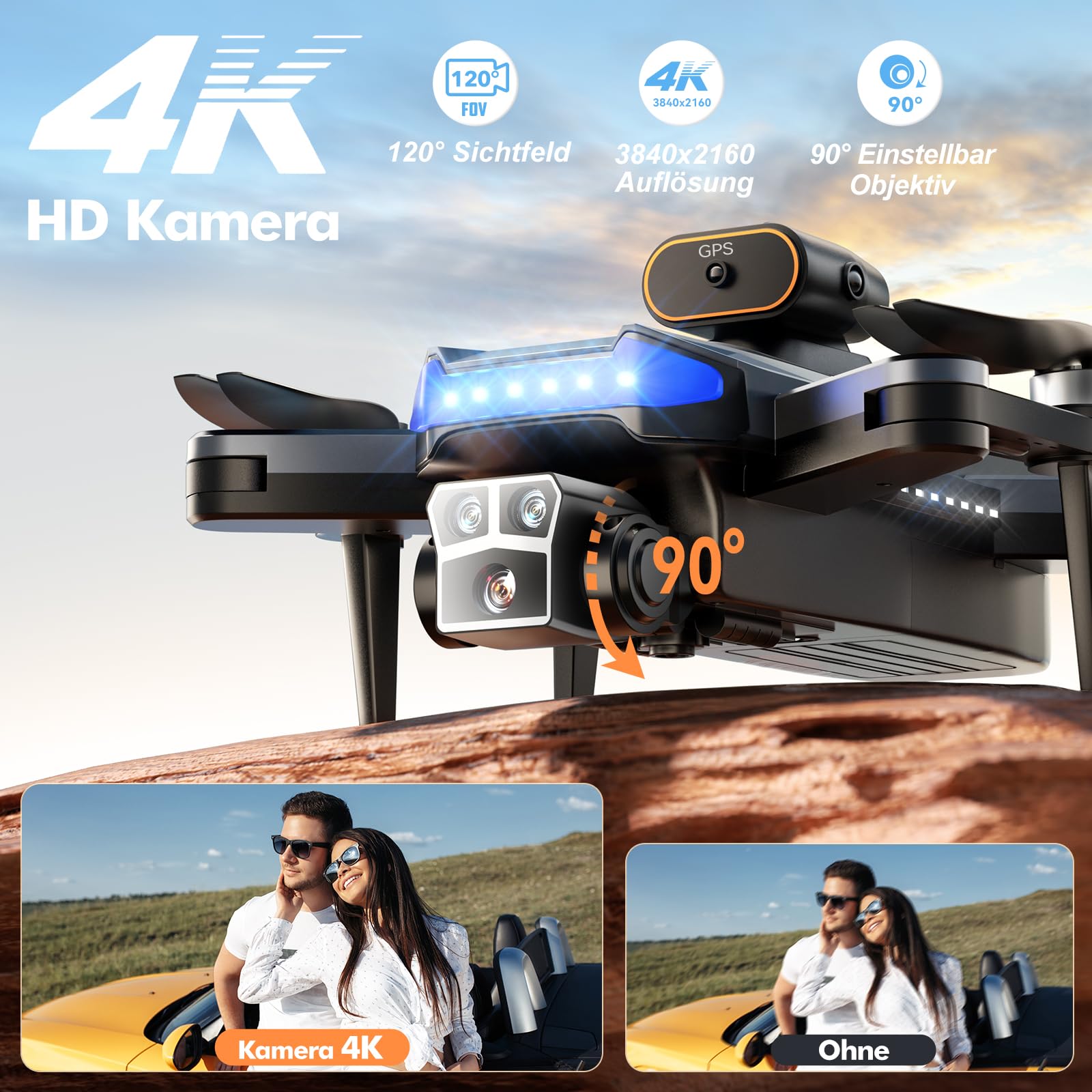 Abheben mit der HYTOBP P17 GPS Drohne - dem perfekten Einstieg in die Welt des Drohnenflugs! Mit einer 4K Triple-Kamera, die um 90° elektrisch verstellbar ist und einen 120° Weitwinkel bietet, fängst du atemberaubende Aufnahmen ein. Die 5G-WLAN-Übertragung überträgt die Bilder in Echtzeit auf dein Smartphone. Mit 3 austauschbaren Akkus genießt du bis zu 54 Minuten Flugzeit - jede Batterie hält etwa 15-18 Minuten. Das GPS-System sorgt für präzises Fliegen, automatische Rückkehr bei niedrigem Akku oder Signalverlust und eine Follow Me-Funktion, die der Drohne befiehlt, dir zu folgen. Unter 249g Gewicht benötigst du keine Drohnen-Führerschein. Wichtig: Immer im Freien mit starkem GPS-Signal fliegen, Kompass und Gyroskop kalibrieren und die Akkus vor jedem Flug vollständig aufladen. Perfekt für Erwachsene, die hochwertige Drohnenaufnahmen machen wollen!