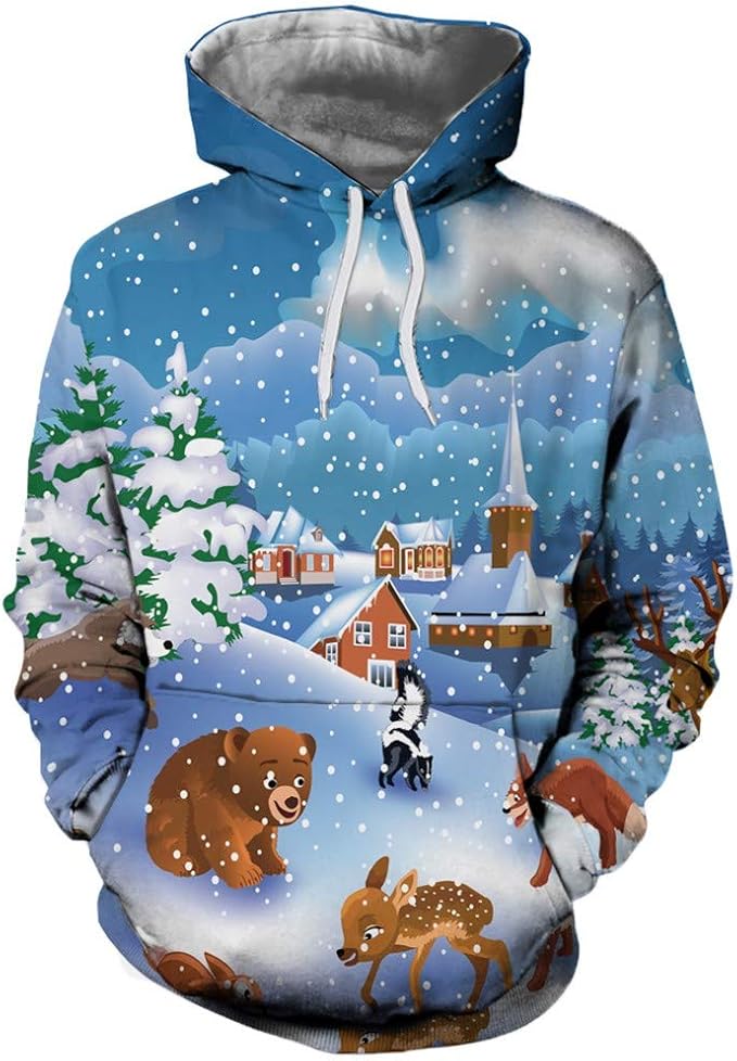 Streetwear Herren Weihnachtspullover | 3D Weihnachtsmann Motiv | Kapuzenjacke Langarm