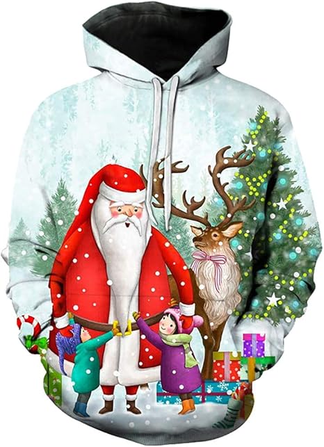 Festliche Stimmung garantiert! Dieser coole Streetwear-Pullover für Herren mit lebendigem 3D-Weihnachtsmann-Motiv ist der absolute Hingucker auf jeder Weihnachtsfeier. Aus weichem Baumwollgemisch für optimalen Tragekomfort, mit praktischer Kapuze und langen Ärmeln. Perfekt für Weihnachtspartys, gemütliche Abende oder als lustiges Geschenk. Die robuste Verarbeitung mit doppelten Nähten sorgt für lange Haltbarkeit. Mach dich bereit für die festliche Season - mit diesem Pullover wirst du zum Weihnachts-Star!
