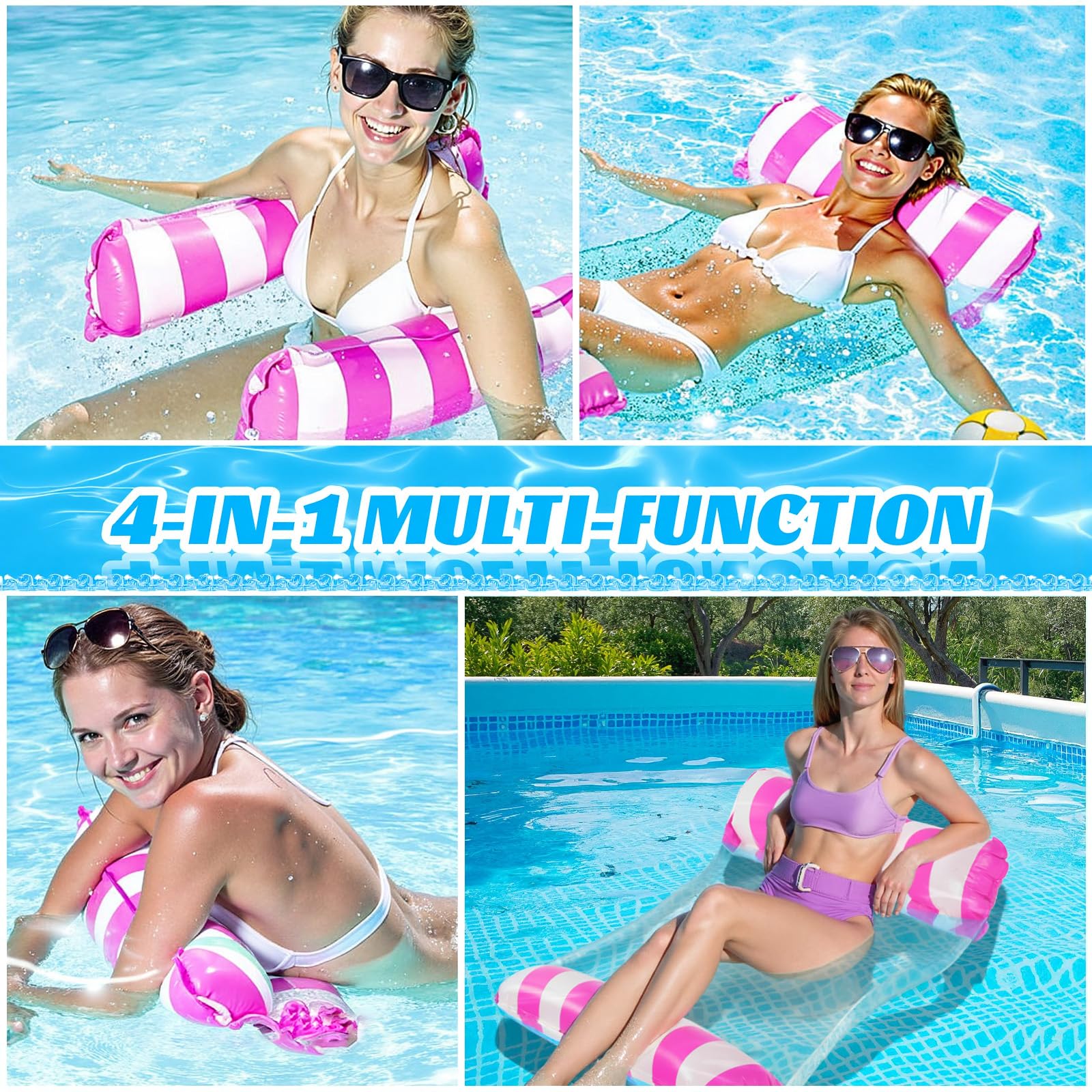 Sommer, Sonne, Wasserspaß! Diese 4-in-1 aufblasbare Schwimmbett ist der Hit für Pool, See oder Meer. Als Sessel, Matte oder Liege nutzbar. 🌊\n\nAus hochwertigem, luftdichtem Material - stabil und langlebig. Vier Luftkammern für extra Stabilität auf dem Wasser.\n\nZusammenklappbar und leicht zu transportieren - perfekt für Urlaub oder Strandtag. Für Erwachsene und Kinder gleichermaßen geeignet.\n\nMach deinen Wasserspaß noch entspannter! Ob zum Relaxen oder Spielen - dieses Schwimmbett macht jeden Tag zum Sommerparadies. Einfach aufblasen und ab ins kühle Nass!