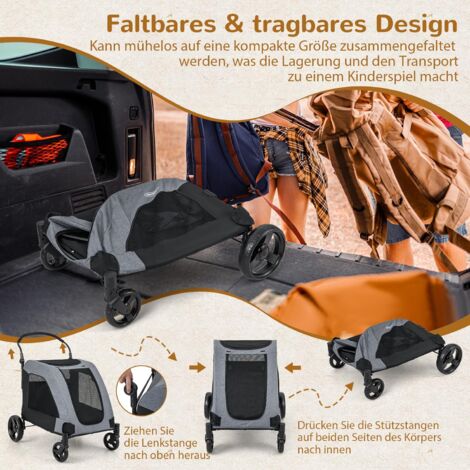 Multifunktional: Als Wagen, Tragetasche oder Autositz verwendbar. Einfache Handhabung, platzsparend verstaut. Gib deinem Hund die Freiheit, auch wenn er nicht mehr so gut laufen kann!