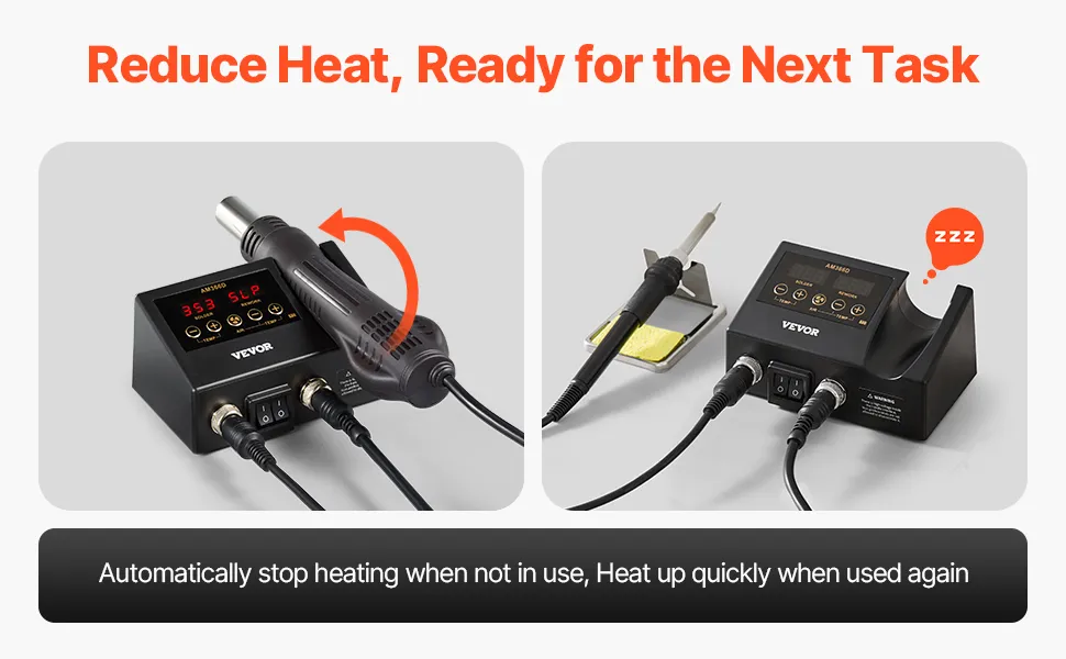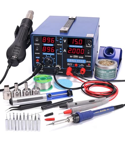 Boah, diese VEVOR 2-in-1 Station ist echt ein Alleskönner! Mit stolzen 820 Watt heizt sie blitzschnell auf und du kannst sofort loslegen. Die Heißluftfunktion geht von 100°C bis 500°C, die Lötspitze schafft sogar 150°C bis 480°C - mehr als genug für alle Elektronik-Projekte. Der 20-stufige Luftstrom ist super praktisch, besonders wenn du empfindliche Bauteile bearbeitest. Das coole Feature: Der automatische Standby-Modus schützt nicht nur dich vor Verbrennungen, sondern verlängert auch die Lebensdauer der Station. Und was ich besonders gut finde - der USB-Anschluss zum Aufladen deines Handys während der Arbeit! Im Lieferumfang ist echt alles dabei: 5 verschiedene Lötspitzen, 3 Heißluftdüsen (5mm, 8mm, 12mm), Entlötpumpe, Pinzette, Lötzinn und Reinigungsschwamm. Perfekt für Reparaturen, Schrumpffolien-Arbeiten oder das Löten von Platinen. Die digitale Anzeige zeigt dir alles genau an und du kannst zwischen °C und °F umschalten. Einfach einstecken, Temperatur einstellen und los geht's!