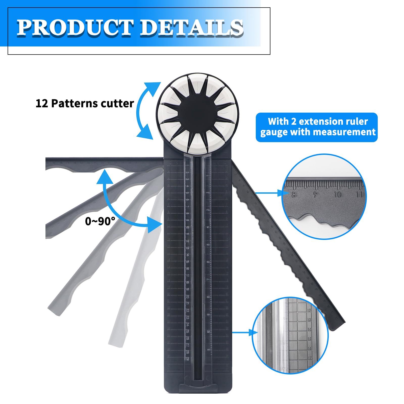 Für alle Bastelfans: Dieser 12-in-1 Papier-Kantenschneider ist ja mal richtig vielseitig! Mit ner rotierenden Scheibe kannst du zwischen 12 verschiedenen Schnittarten wechseln - ob gerade, gewellt, perforiert oder gewellt, im oder gegen den Uhrzeigersinn. Alles kein Problem! Das transparente Lineal und die rutschfeste Basis sorgen für präzise Schnitte jedes Mal. Aus robustem Kunststoff gefertigt, ist der Schneider langlebig und super einfach zu bedienen. Mit 46,8x12,3x3,2cm Größe und 350g Gewicht ist er handlich und passt in jede Bastelkiste. Perfekt für Scrapbooking, Kartenbasteln, Geschenke verpacken oder einfach nur zum Rumspielen mit Papier. Wenn du gerne bastelst, ist dieses Teil ein absolutes Muss!