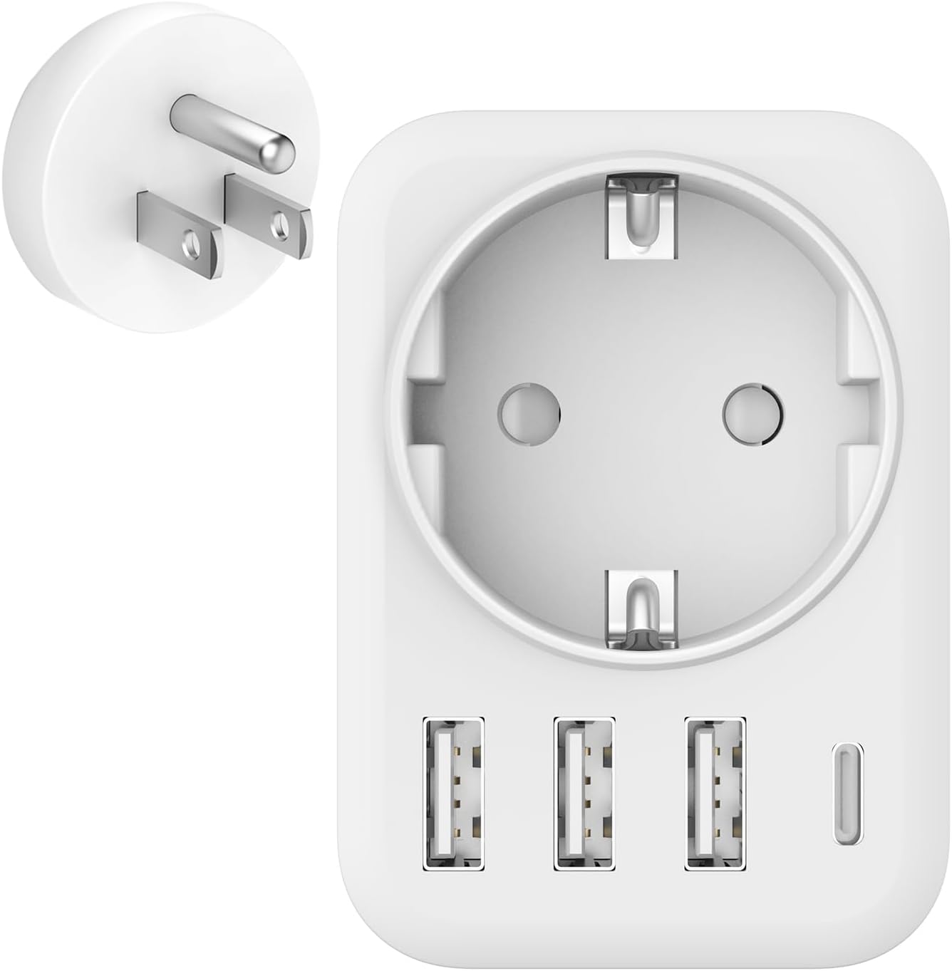 Hey, dieser Dalimee Reiseadapter ist echt praktisch für deine nächste Reise! Ob nach Japan, USA, Kanada oder Thailand - mit dem 7-in-1 Adapter hast du immer die passende Steckdose dabei. 🌍\n\nWas kann der alles? Ganz schön viel: 1 Schukosteckdose, 1 EU-Steckdose, 2 USB-C und 2 USB-A Anschlüsse. Damit lädst du easy bis zu 6 Geräte gleichzeitig - dein Handy, Laptop, Kamera, Powerbank... alles kein Problem!\n\nDas Beste: Mit 17W Ladeleistung geht's richtig flott. Die USB-C Ports sind perfekt für moderne Geräte. Und keine Sorge um Sicherheit - der Adapter hat Überhitzungs- und Überspannungsschutz, plus Kindersicherung.\n\nKlein und leicht passt er in jeden Rucksack (nur 75x71x74 mm). Wichtig: Das ist ein Adapter, kein Spannungswandler. Deine Geräte sollten 100-250V vertragen. Maximal belastbar bis 2500W - reicht also auch für Haartrockner oder Laptops.\n\nPerfekt für Hotelzimmer, Kreuzfahrten oder Studentenwohnheime. Einfach den Netzschalter umlegen und schon kannst du lossurfen oder Fotos sortieren!