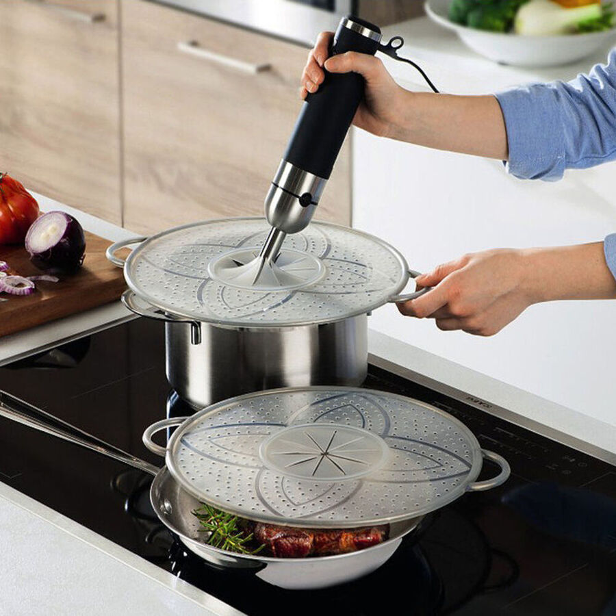 Endlich keine Fettspritzer mehr in der Küche! Dieser geniale 3-in-1 Spritzschutz von Simply Served ist aus lebensmittelechtem Silikon und Edelstahl - absolut BPA-frei und sicher für deine Küche. Mit 28,6 x 33,7 cm passt er perfekt auf Pfannen bis 27,9 cm Durchmesser. Aber das ist noch nicht alles: Du kannst ihn auch als Sieb für Nudeln oder Gemüse verwenden, als Untersetzer für heiße Töpfe oder sogar als Dampfgarer-Einsatz! Der Spritzschutz lässt Dampf entweichen, hält aber Fettspritzer zuverlässig zurück. Einfach zu reinigen - per Hand oder in der Spülmaschine. Die Antihaft-Beschichtung sorgt dafür, dass selbst eingebrannte Flecken leicht abgehen. Spart nicht nur Ärger mit Putzen, sondern auch jede Menge Stauraum in der Küche! Ein echter Alleskönner für jeden Koch!