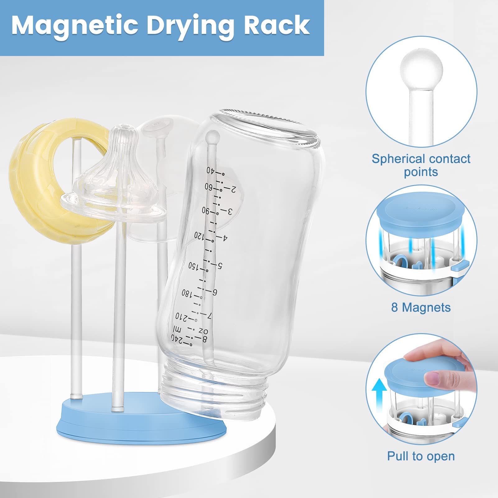 Oh Mann, das ist ja das komplette Reinigungsset für Babyflaschen! Mit 6 Teilen hast du alles was du brauchst: Flaschenbürste, Abtropfgitter, Strohhalmbürste, Dosierflasche, Aufbewahrungsbox und sogar ne Schnullerbürste. Einfach alles reinigen ohne irgendwas zu vergessen! \\n\\nDas beste: Alles ist aus lebensmittelechtem ABS und Silikon, komplett BPA-frei und kratzt nicht an den Flaschen. Die Borsten sind so designed, dass sich kein Schmutz festsetzen kann - super hygienisch! \\n\\nDer Clou: Die Bürsten kommen auch in die engsten Ecken von Flaschen und Schnullern. Viel besser als diese Schimmel-anfälligen Schwammbürsten! Mit dem Abtropfgestell trocknet alles super schnell. \\n\\nUnd das Set ist so handlich - die Box misst nur 15x10 cm. Passt easy in Wickeltasche oder Rucksack für unterwegs. Mit der Aufhängeöse sparst du noch mehr Platz. \\n\\nEhrlich gesagt, das Teil ist nicht nur für Babyflaschen gut. Teetassen, Eiswürfelbehälter, Formen - alles wird blitzsauber! Mega praktisches Geschenk für junge Eltern oder Schwangere.