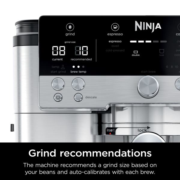 Deine persönliche Barista-Station für zu Hause! Die Ninja Luxe Premier Kaffeemaschine vereint drei Geräte in einem: Espressomaschine, Cold Brew Maker und Filterkaffeemaschine. Mit integriertem Mahlwerk und 25 Mahlgradeinstellungen bestimmst du genau, wie dein Kaffee schmecken soll. Die Barista-Assist-Technologie macht es super einfach - wähle einfach dein Lieblingsgetränk, die Stärke und Größe, den Rest erledigt die Maschine. Der automatische Milchaufschäumer mit 4 Voreinstellungen zaubert perfekten Mikroschaum für deinen Milchkaffee, egal ob mit Kuh- oder Pflanzenmilch. In Grau-Metallic sieht die Maschine nicht nur edel aus, sie ist auch praktisch: Alle abnehmbaren Teile sind spülmaschinenfest. Mit 37,2x33,6x34,4 cm findet sie in jeder Küche Platz. Inklusive Schaumkanne, Mahlwerk, Reinigungszubehör und Rezeptanleitung - alles, was du für perfekten Kaffeegenuss brauchst!