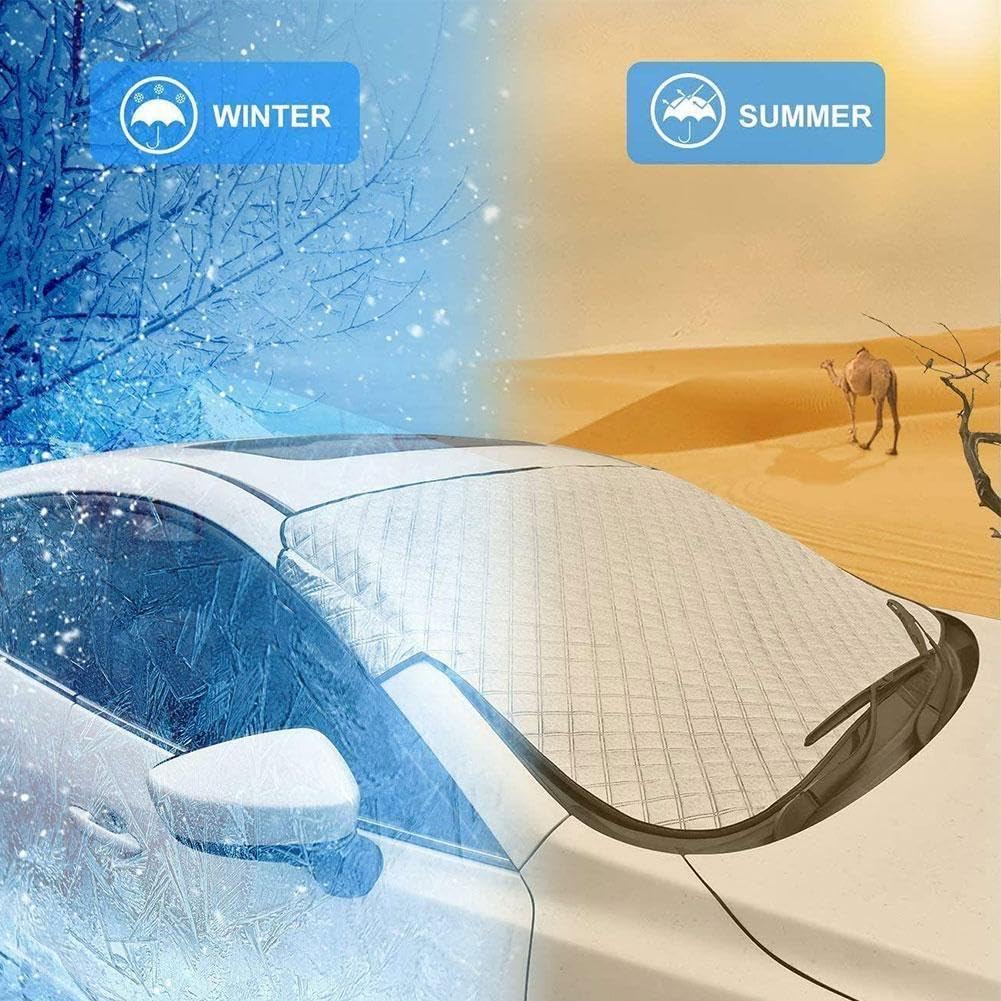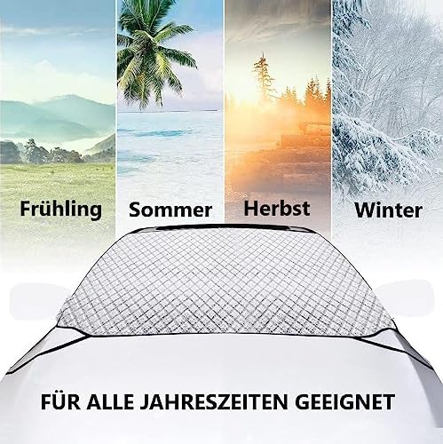 Dieser Alleskönner für deine Auto-Frontscheibe ist echt praktisch! Mit 150x100cm passt er auf fast jedes Auto und schützt das ganze Jahr über: Im Sommer gegen Hitze und UV-Strahlen, im Herbst gegen Laub und Staub, im Winter gegen Eis und Schnee - und im Frühling gegen Vogelkot. Das 4-lagige Material (Aluminiumfolie, Baumwolle, Baumwollverbundstoff, Vliesstoff) ist richtig robust und hält was aus. Die zwei kleinen 'Ohren' an den Seiten helfen beim Befestigen an den Sonnenblenden. Und wenn du ihn nicht brauchst - einfach zusammenfalten und in die mitgelieferte Tasche stecken. Übrigens: Kann nicht nur im Auto verwendet werden, sondern auch als Picknick- oder Yogamatte, oder als Unterlage für Kinder und Haustiere im Freien. Spare dir morgens die Zeit zum Eiskratzen und schone deine Innenausstattung vor der Sonne. Einfach praktisch!