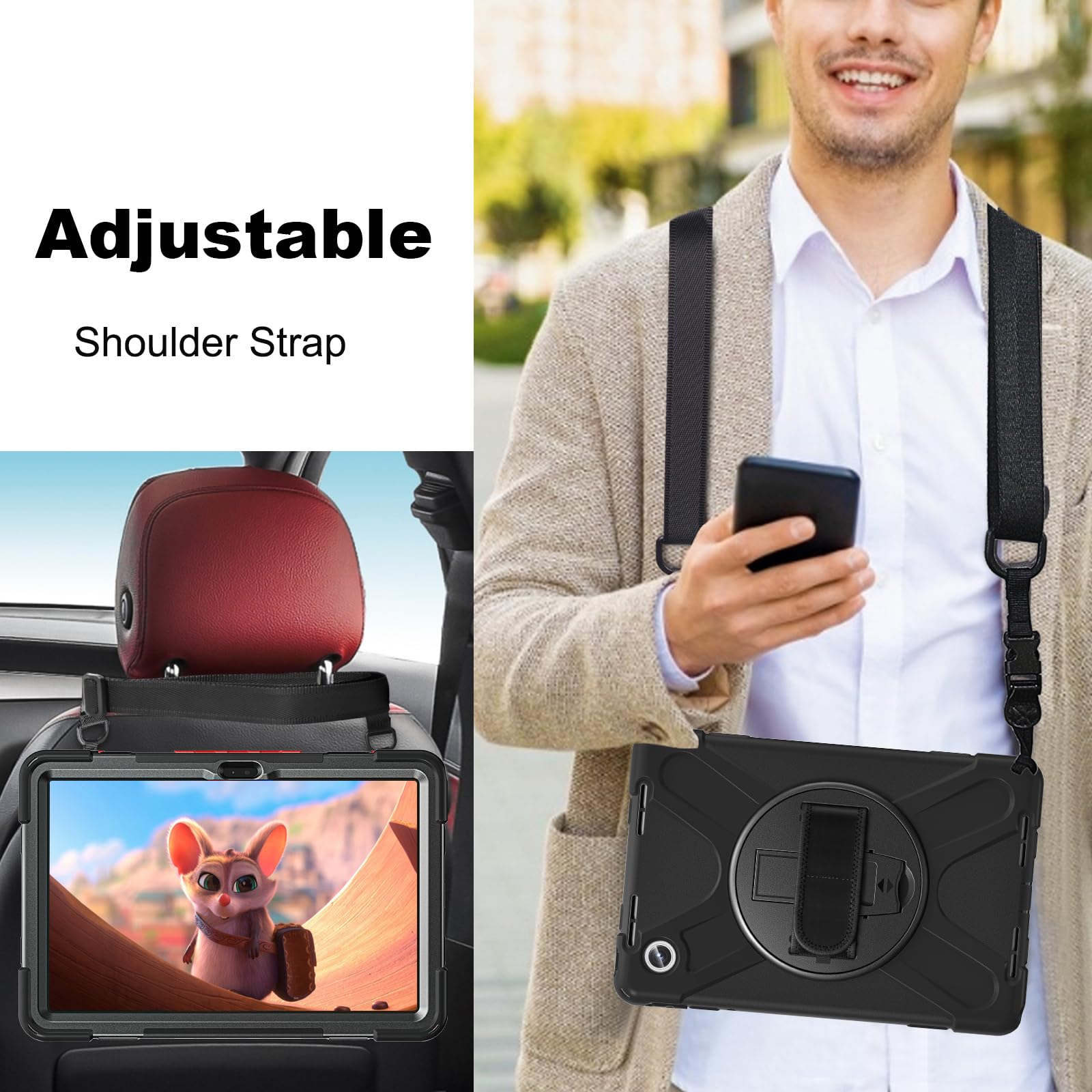 Was die Hülle so besonders macht? Die 360° drehbare Handschlaufe lässt sich super einfach in jeden Winkel bringen - ob du gerade Filme schaust, spielst oder arbeitest. Und der abnehmbare Schultergurt ist perfekt für unterwegs, wenn du deine Hände frei brauchst.