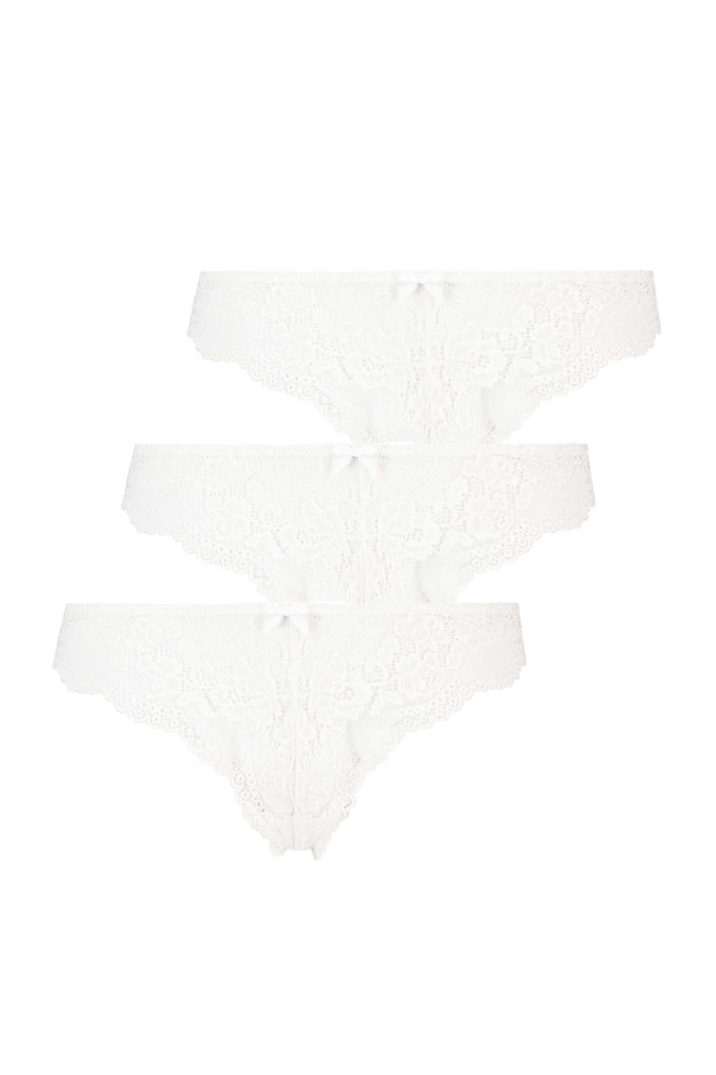 Einfach unwiderstehlich! Dieses 3er-Set Brazilian Slips von Hunkemöller vereint Komfort und Eleganz perfekt. Mit zarter Blütenspitze verziert, schmeicheln diese Slips deiner Figur und sorgen für eine glatte Silhouette unter jeder Kleidung. Der Brazilian-Schnitt bedeckt die obere Hälfte deines Pos - genau die richtige Mischung aus sexy und alltagstauglich. Regular Fit sitzt perfekt, ohne zu zwicken oder zu scheuern. Drei verschiedene Slips in einem Set zu einem super Preis - da freut sich nicht nur deine Dessous-Schublade, sondern auch dein Geldbeutel! Aus hochwertiger Spitze gefertigt, die sich angenehm auf der Haut anfühlt. Ob für den täglichen Gebrauch oder besondere Anlässe - mit diesen Slips fühlst du dich einfach wohl in deiner Haut. Hunkemöller Qualität, die du kennst und liebst!