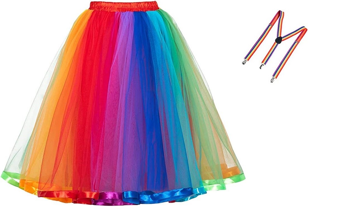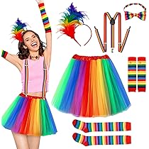 Huch, dieses Regenbogen Tüllrock Set ist ja der absolute Party-Hammer! Das 5-teilige Set kommt mit nem langen bunten Tüllrock, verstellbarem Regenbogen-Gürtel, Feder-Haarreif, Ohrringen mit Quasten und coolen Tattoo-Aufklebern. Der Rock ist aus weichem Polyester-Tüll, kratzt nicht und ist angenehm zu tragen. Mit elastischem Bund von 70-120cm Taillenumfang passt er fast jeder Frau - und der Rock ist satte 65cm lang! Perfekt für Karneval, Halloween, Fasching oder jede bunte Mottoparty. Sieht aus wie von nem Festival - einfach anziehen und die Blicke genießen! Das komplette Set macht sofort Laune und du brauchst keine weiteren Accessoires. Einfach umwerfend und garantiert ein Hingucker auf jeder Feier! Mach dich bereit für Komplimente ohne Ende!