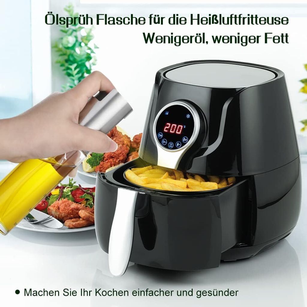 Endlich kontrolliert Öl dosieren! Diese 2 Ölsprüher aus Glas machen das Kochen, Backen und Grillen so viel einfacher. Einfach Öl einfüllen (der beiliegende Trichter hilft dabei) und gleichmäßig auf Pfannen, Grillrost oder Salat sprühen. So verwendest du weniger Fett und dein Essen wird gesünder. Das Glas ist hitzebeständig und die lecksichere Verschluss sorgt dafür, dass nichts ausläuft. Im Set enthalten: 2x 100ml Sprühflaschen, 2x Trichter, 2x Ölbürsten und 2x Reinigungsbürsten. Perfekt für die Küche, aber auch super für Picknicks, Camping oder Grillpartys - der klappbare und verstärkte Flaschenkörper ist ideal unterwegs. Mach deine Gerichte leichter und genieße den vollen Geschmack ohne zu viel Fett!