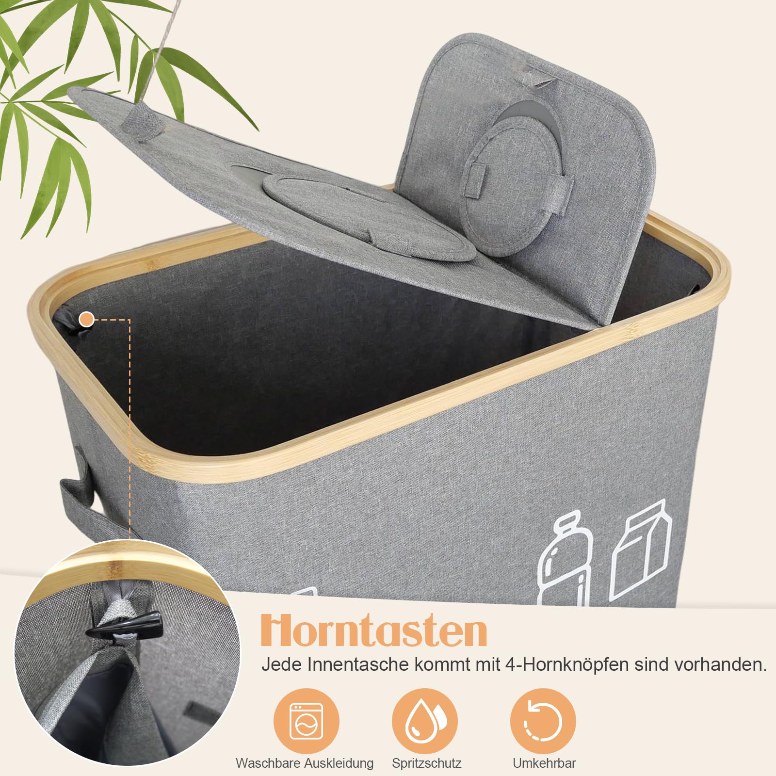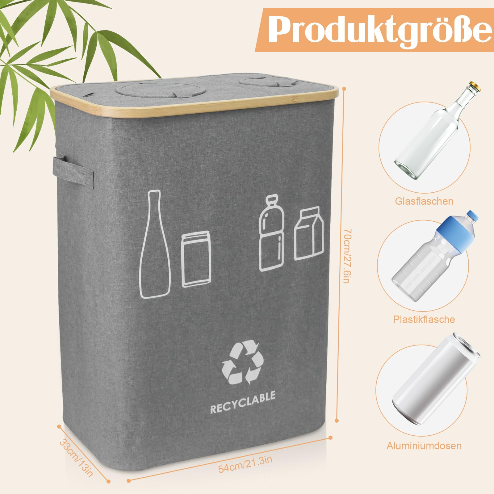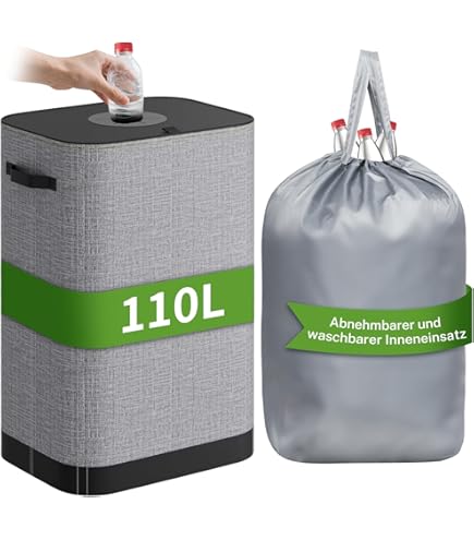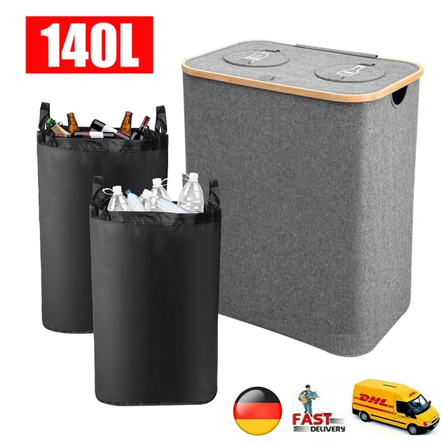 Schluss mit dem Pfand-Chaos! Dieser Sammelbehälter von Whemyreat hat 140 Liter Fassungsvermögen - da passt alles rein: Plastikflaschen, Dosen, Glas. Der Deckel mit zwei Öffnungen (groß und klein) hilft beim Sortieren, und die innere Dichtung hält Gerüche fern. Außen gibt's Taschen und Griffe für mehr Komfort. Aus robustem Canvas, leicht zu reinigen und wasserabweisend. Aber er kann mehr: Nutz ihn für schmutzige Wäsche, Zeitungen, Spielzeug oder Tierbedarf. Mit 54 x 33 x 70 cm (LxBxH) und in Grau/Schwarz passt er in jeden Raum. Endlich Ordnung im Pfand-Dschungel!