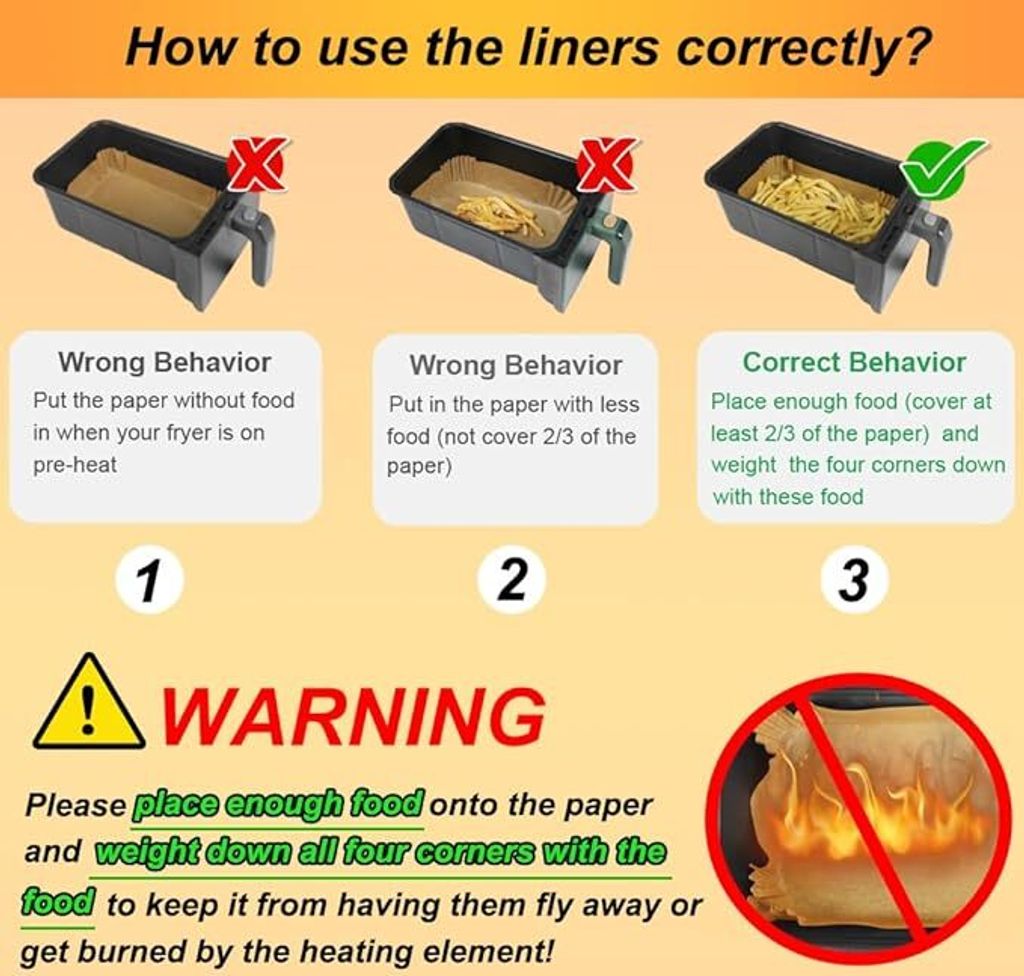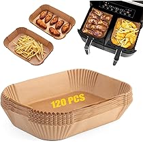 Kochen ohne Sauerei! Diese 120 Backpapiere für Heißluftfritteusen (20,5x14cm) passen perfekt für Ninja Double Stack und andere Doppelkammer-Modelle. Lebensmittelecht, antihaftbeschichtet und mit erhöhtem Rand. Einfach reinlegen, kochen und entsorgen - keine lästige Reinigung mehr. Spart Zeit und Nerven. Dein bester Küchenhelfer für sauberes und gesundes Kochen!