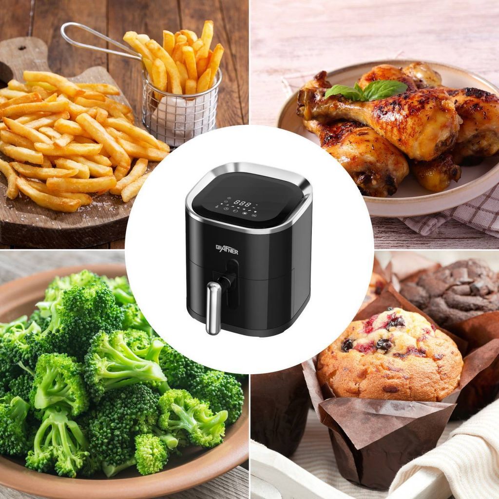 Puh, das Reinigen der Heißluftfritteuse kann manchmal echt nerven, oder? Mit diesem 7-teiligen Reinigungsset wird's zum Kinderspiel! Du bekommst alles, was du brauchst: eine große Reinigungsbürste, eine kleine Bürste für Ecken, eine Spaltbürste, zwei Stoffbürsten, einen Schwamm und ein Handtuch. \\n\\nDie verschiedenen Bürsten haben unterschiedliche Borsten - von weich bis kräftig. So kriegst du sowohl empfindliche Oberflächen sauber, als auch eingebrannte Reste in den Ritzen. Die Stoffbürsten kratzen nicht und der Schwamm nimmt Fett super auf. \\n\\nSuper praktisch: An allen Griffen sind Aufhänger, sodass du das Set nach dem Waschen einfach zum Trocknen aufhängen kannst. So bleibt alles hygienisch sauber. \\n\\nEgal ob du den Korb, das Rost oder das Heizelement reinigen willst - mit diesem Set kommst du überall dran. Regelmäßiges Putzen verlängert die Lebensdauer deiner Fritteuse und verhindert lästige Gerüche. \\n\\nMach das Reinigen deiner Heißluftfritteuse endlich stressfrei! Mit diesem Set bist du in wenigen Minuten fertig und kannst dich auf das Kochen konzentrieren.