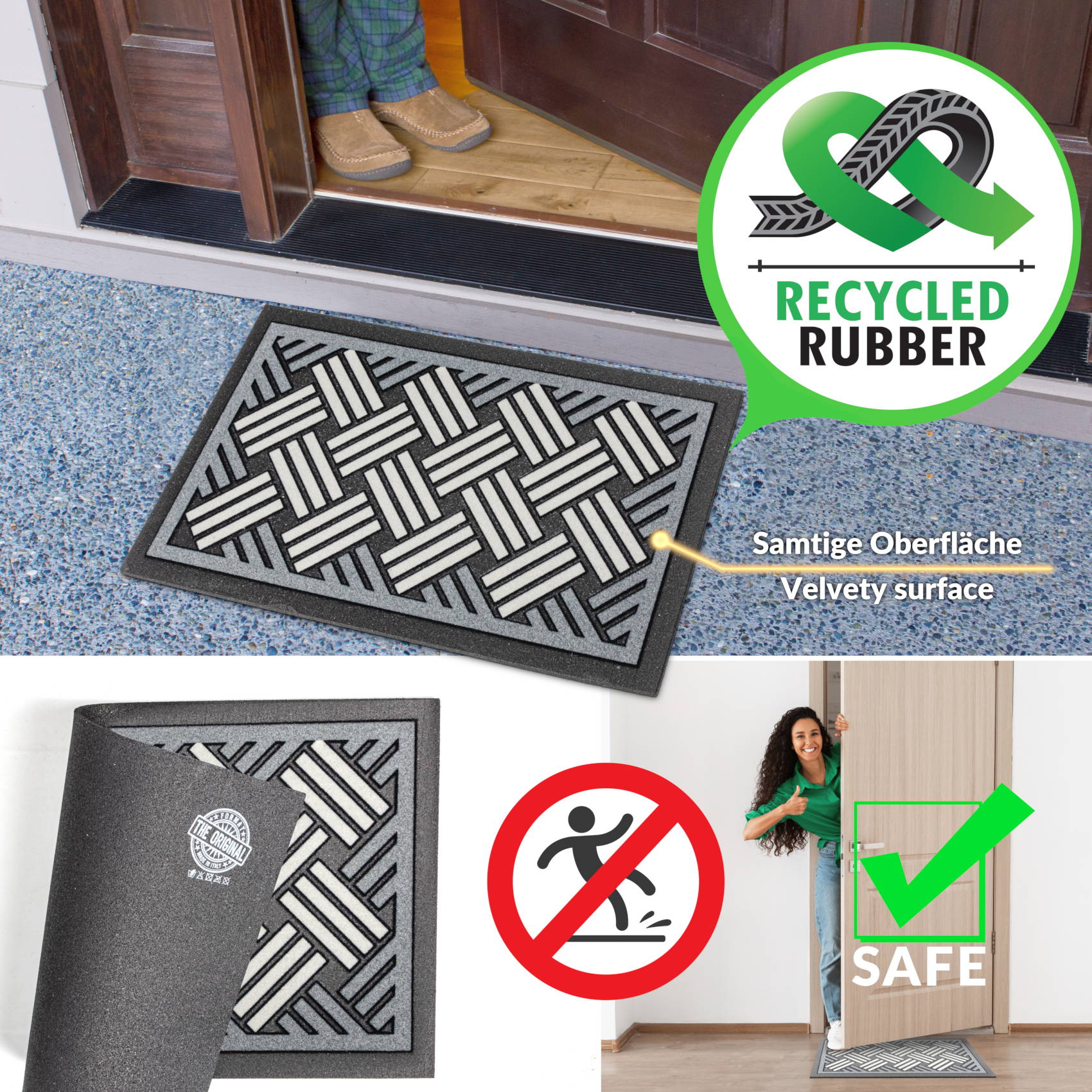 Bring Sonnenblumen-Stimmung in dein Zuhause! Diese weiche Fußmatte mit fröhlichem Sonnenblumen-Motiv ist perfekt für deine Eingangstür. Mit 40,6x61 cm Größe fängt sie zuverlässig Schmutz, Wasser und Schnee ab. Die rutschfeste Unterseite aus Non-Woven-Material hält sicher auf jedem Boden. Super saugfähig - trocknet schnell und hält deine Böden sauber. Ideal für Haustierbesitzer: sanft zu Pfoten und reduziert das Einschleppen von Dreck. Passt super unter Türen ohne zu stören. Auch perfekt für Küche, Bad oder als Haustierteppich. Ein hübsches Geschenk für Einzug, Geburtstage oder einfach so!