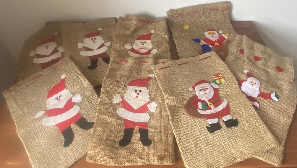 • 16 Stück Jute-Weihnachtsstrümpfe In Elfenbein - Rustikale Dekoration Für Den Kamin