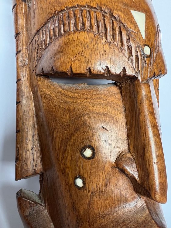 Wow, diese afrikanische Maske ist ein absoluter Hingucker! Komplett handgeschnitzt aus Albizia-Holz mit einem tollen Schildkröten-Motiv. Ganze 50cm groß - das macht was her an der Wand! Braun/chokoladenbraun lackiert, mit schönen handbemalten Details. Auf der Rückseite ist eine Aufhängung, also einfach an die Wand und fertig. Sieht super aus im Wohnzimmer, Flur oder auch im Büro - bringt sofort diesen ethnischen Flair rein! Jede Maske ist ein Unikat weil handgefertigt - Farbe und Maserung variieren immer etwas. Fair gehandelt und richtig gut verarbeitet. Perfekt für alle die was Besonderes für ihre Deko suchen oder sich nach Afrika-Urlaub sehnen. Einfach aufhängen und den Raum sofort in eine gemütliche Lodge-Atmosphäre verwandeln! Auch ein super Geschenk für Leute die besondere Deko mögen.
