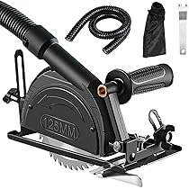 Mit Staubschutzsitz und Entfernungsrohr für sauberes Arbeiten. Die Stützschiene ermöglicht präzises Schneiden und Nuten. Sicherheit und Genauigkeit in einem!