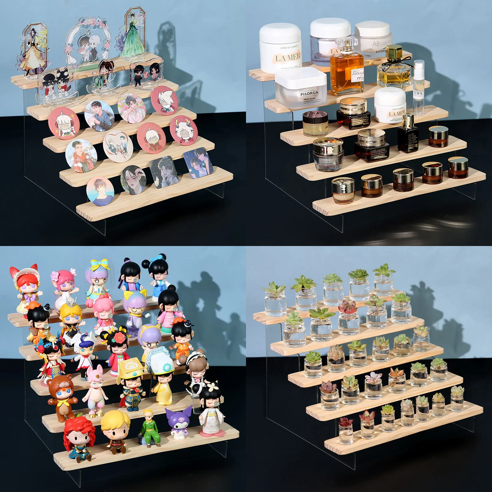 Dieser 3-stufige Acryl-Ständer ist ein echter Alleskönner für deine Präsentationsbedürfnisse! Mit den Maßen 20x14x16cm (etwa 7,9x5,5x6,3 Zoll) bietet er auf drei Ebenen Platz für allerlei Kleinkram den du schön ordnen und präsentieren willst. Ob Brieftaschen, Schmuck, Kosmetikartikel, kleine Spielzeuge oder whatever - auf diesem Ständer sieht alles gleich viel edler aus. Das super transparente Acryl lässt deine Produkte perfekt zur Geltung kommen ohne abzulenken. Und weil das Material etwas dicker ist, wackelt der Ständer nicht und steht bombenfest. Perfekt also für zu Hause im Regal, im Retail-Bereich oder im Büro um kleine Dinge organisiert zu halten. Jede Ebene hat eine etwas andere Breite und Höhe, was für eine interessante optische Wirkung sorgt. Praktisch: Du kannst den Ständer sowohl hochkant als auch quer verwenden - je nachdem was du darauf präsentieren willst. Beim Auspacken musst du nur den Schutzfilm abziehen - dann glänzt das Acryl in voller Pracht. Ein echter Hingucker der nicht viel kostet aber eine große Wirkung hat. Egal ob du deine Lieblingsstücke zur Schau stellen willst oder im Verkauf arbeitest - mit diesem Ständer machst du alles gleich viel ansehnlicher. Einfach mal ausprobieren und du wirst sehen wie viel Ordnung so ein kleines Teil bringen kann!