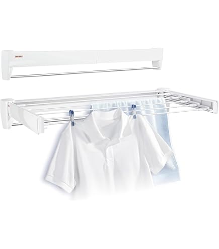 Platzproblem? Dieser Wäscheständer ist die Lösung! Mit 60cm Breite und 4 Aluminium-Stangen bietet er reichlich Platz für deine Wäsche, klappt aber auf nur 2,5cm zusammen. Tragkraft: stolze 27,2kg! Perfekt für Bad, Balkon oder Terrasse. Einfach zu montieren - inklusive aller Schrauben und Bohrschablone. Die abgestuften Stangen sorgen für gute Luftzirkulation, damit deine Wäsche schneller trocknet. Nie wieder Wäscheständer, der im Weg steht! Wenn er nicht gebraucht wird, einfach an die Wand klappen - platzsparend und praktisch. Ein Must-Have für jede Wohnung!