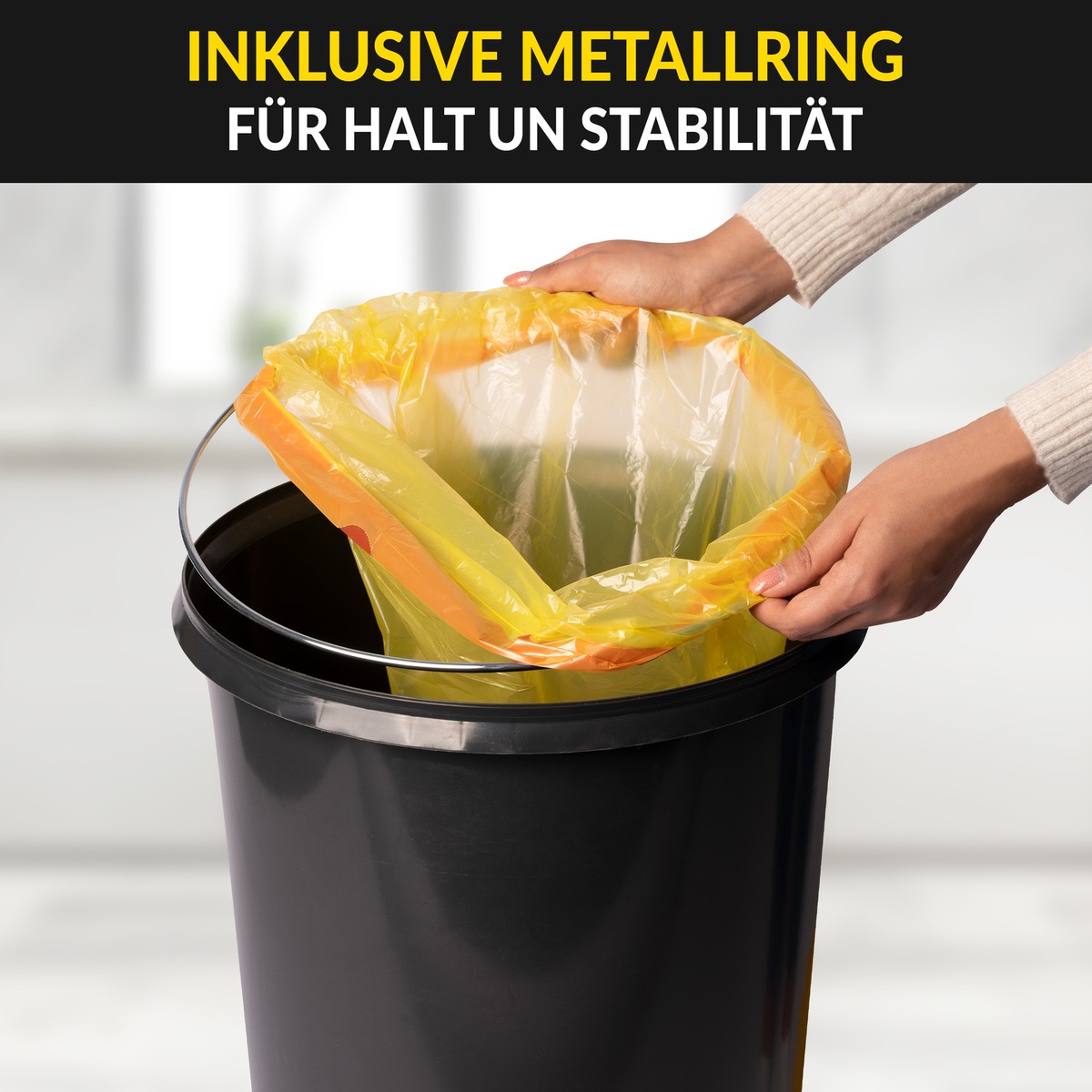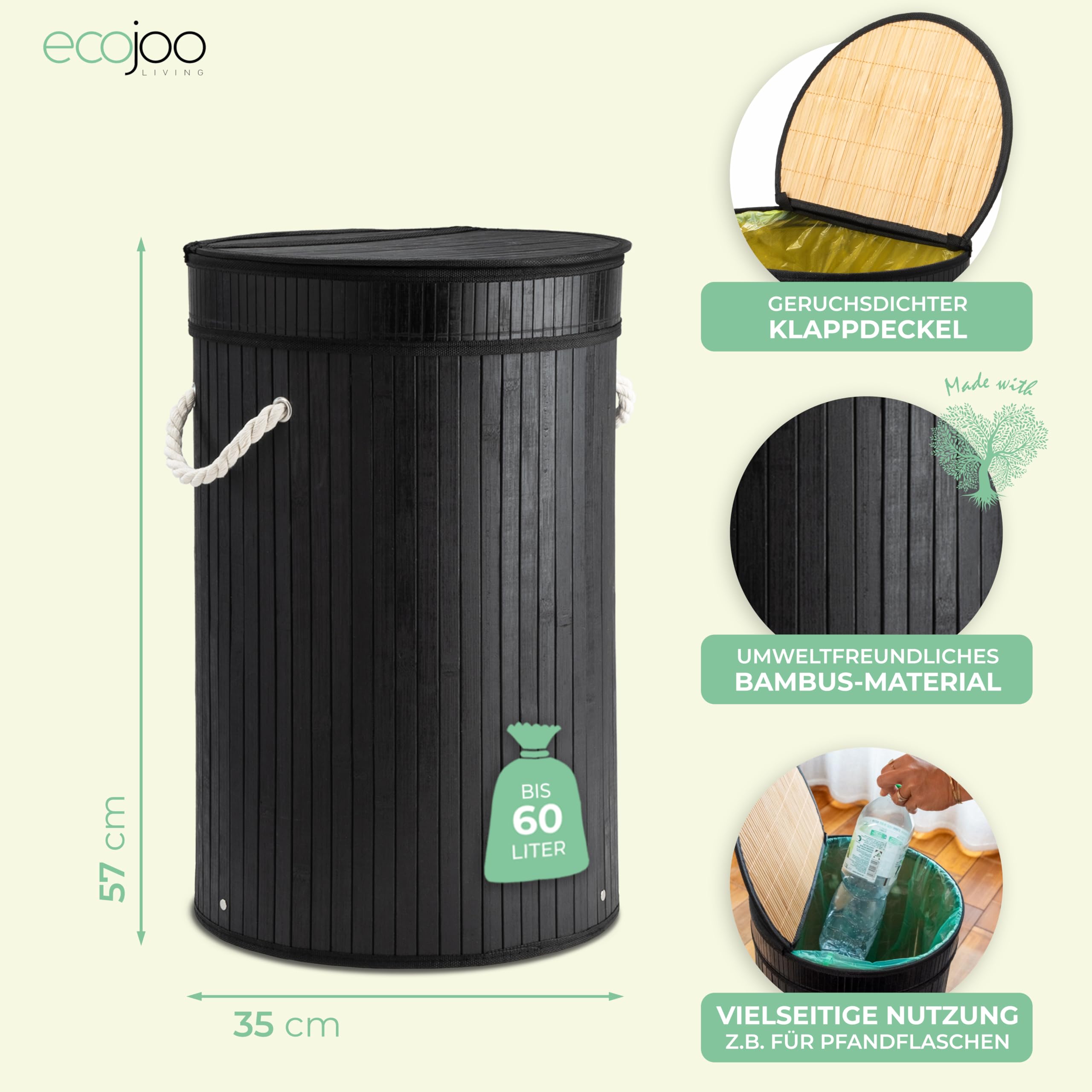 Endlich Ordnung im Gelbe-Sack-Chaos! Dieser stabile Ständer aus Bambus ist die perfekte Lösung für deine Wertstoffsammlung! Mit 45% mehr Stabilität durch extra dicke Wände und optimierte Geometrie - da steht alles bombenfest! Der Deckel schließt geruchsdicht ab - perfekt für Küche oder Wohnräume, kein Ungeziefer kommt ran! Mit 80 Liter Volumen genau die richtige Größe - kein Überdehnen der Säcke mehr! Wechsel in Rekordzeit: Zwei Handgriffe und der neue Sack ist eingespannt - so macht Mülltrennen Spaß! Aus umweltfreundlichem Bambus - robust und langlebig! Praktische Trageschlaufen zum leichten Umstellen! Auch super als Pfandflaschen-Sammler geeignet! Das Loch im Boden sorgt für Unterdruckausgleich beim Herausziehen - kein Hängenbleiben mehr! Mit sicherer Klemm-Fixierung - der Sack bleibt immer an Ort und Stelle! In schicker Optik - sieht besser aus als jeder Plastikeimer! Ob für Haushalt, Küche, Keller oder Garage - mit diesem Ständer wird Mülltrennen zum Kinderspiel! Hol dir endlich eine ordentliche Lösung für deine Gelben Säcke!