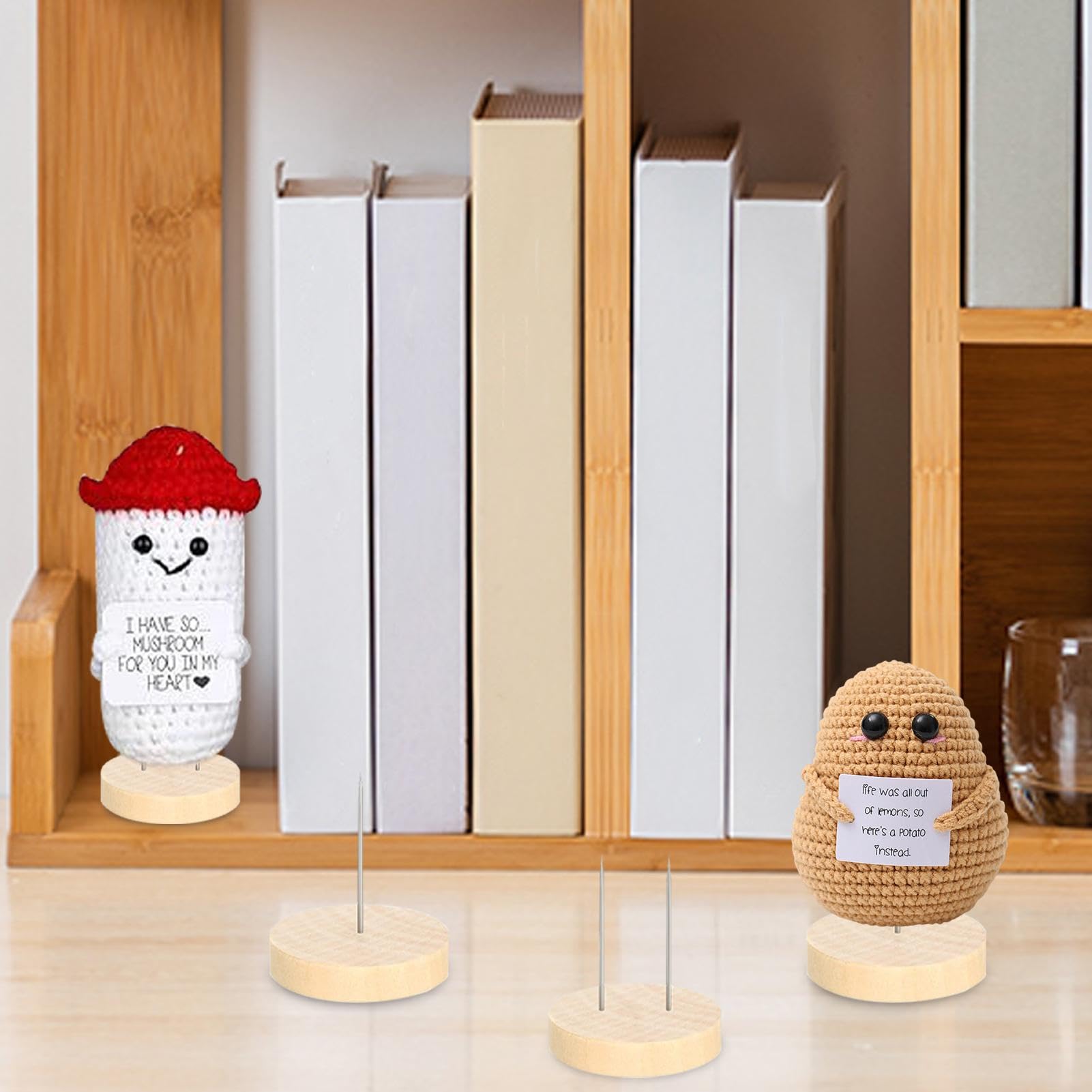 Hallo ihr kreativen Köpfe! 🧶 Macht ihr auch so gerne diese süßen kleinen Nadelpuppen? Dann kennt ihr das Problem: Wie stellt man die am besten aus, ohne dass sie ständig umkippen? Hier ist die Lösung! Diese 24 Holzständer sind genau dafür gemacht.\n\nJeder Ständer hat eine stabile Basis (ca. 4x0,8 cm) und hält eure Puppen sicher im Blick. Im Set sind sowohl Einzel- als auch Doppelnadeln dabei - also für jede Puppengröße und -form der passende Halt. Und das aus robustem Holz, das auch nach häufigem Gebrauch noch gut aussieht.\n\nPerfekt für den Couchtisch, das Bücherregal oder die Vitrine. Platzsparend, dekorativ und super praktisch. Endlich müssen eure kleinen Kunstwerke nicht mehr in der Kiste verstauben, sondern können sich in voller Pracht präsentieren. Einfach aufstellen und staunen! ✨