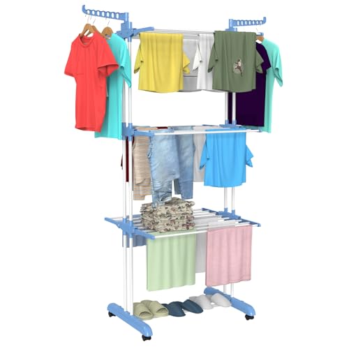 Platzprobleme beim Wäschetrocknen? Dieser klappbare Wäscheständer mit 3 Etagen ist die Lösung! Mit den ausklappbaren Flügeln bietet er jede Menge Platz für deine ganze Wäsche. Super praktisch: Er lässt sich nach Gebrauch einfach zusammenklappen und platzsparend verstauen. Die höhenverstellbaren Etagen passen sich unterschiedlicher Wäsche an - Handtücher unten, empfindliche Teile oben. Das stabile Gestell hält auch schwerere Textilien problemlos aus und wackelt nicht. Ob in der Wohnung, im Bad oder auf dem Balkon - dieser Wäschetrockner ist ein echter Allrounder! Die rosa Farbe bringt dazu noch einen frischen Look in dein Zuhause. Perfekt für kleine Wohnungen oder Haushalte mit viel Wäsche. Einfach aufstellen, Wäsche drauf und trocknen lassen - einfacher geht's nicht! Spart Energie im Vergleich zum Trockner und deine Wäsche riecht frisch wie nach dem Spaziergang an der Luft.
