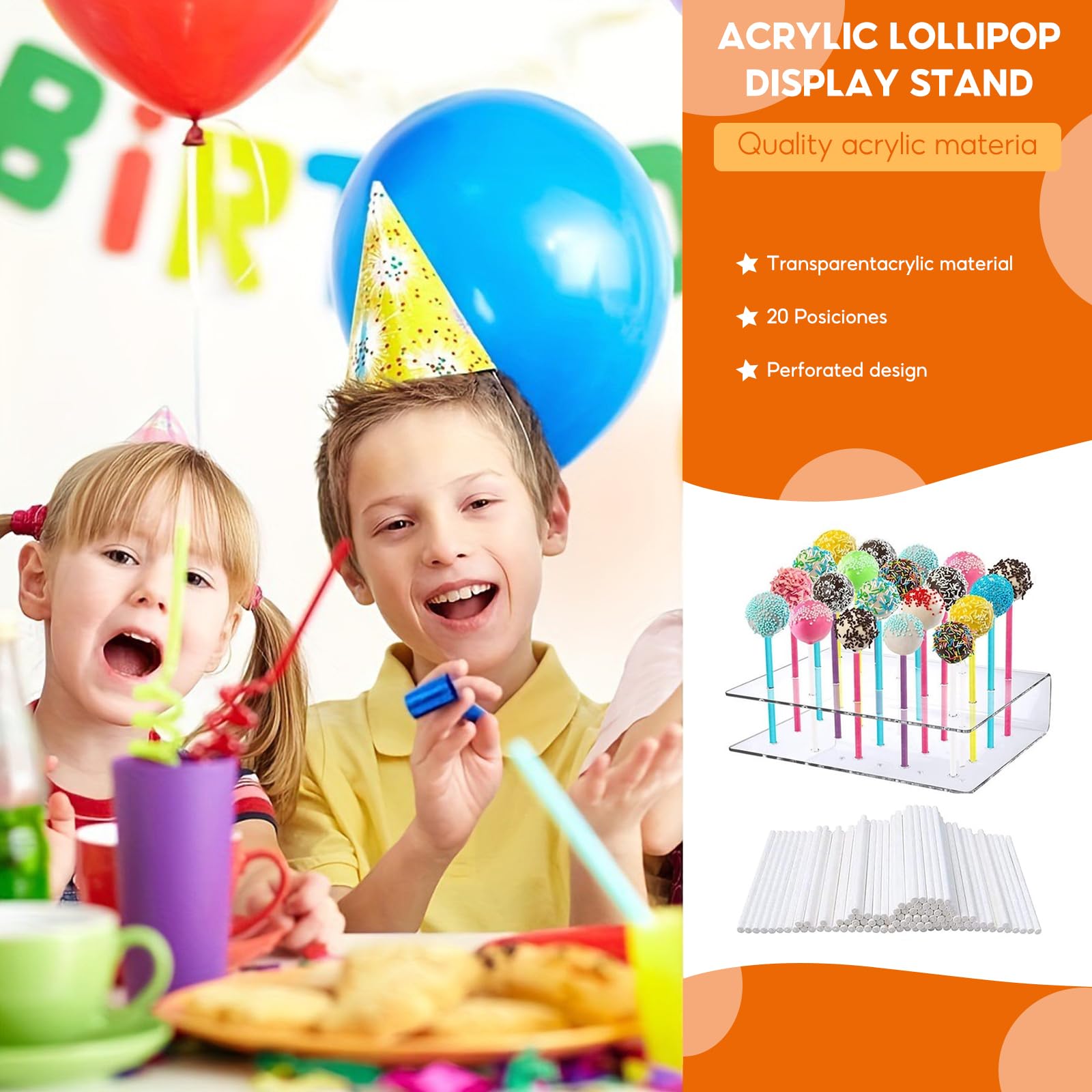 Time for Cake Pops! Mit diesem praktischen Set hast du alles, was du für deine süßen Kreationen brauchst: 2 transparente Acryl-Ständer und 200 bunte Stäbchen. Perfekt für Geburtstage, Hochzeiten oder einfach nur weil's lecker ist!