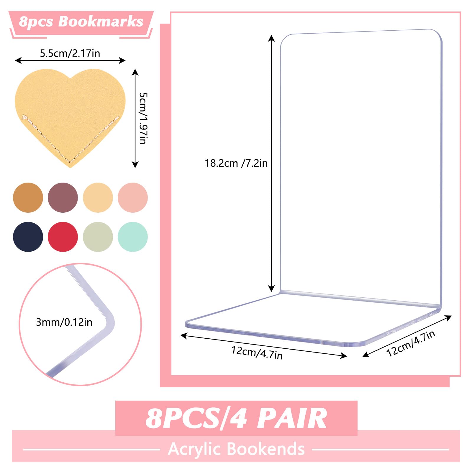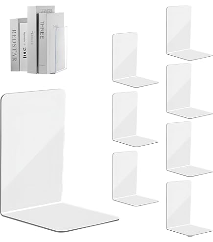 Moin Bücherwurm! Diese Acryl-Buchständer von WATUNID bringen Ordnung in dein Regal! Im Set: 8 stabile Buchstützen (12x12x18,2cm) PLUS 8 Acryl-Lesezeichen (2,5x14cm) - vollständig transparent und stylisch. Die L-förmige Form hält selbst schwere Bücher sicher an Ort und Stelle. Aus 3mm starkem Acryl - robust und langlebig. Mit rutschfesten Pads an der Unterseite - kippt nicht um! Die glatten, abgerundeten Kanten schützen deine Bücher und Hände vor Kratzern. Perfekt für Bücher, Zeitschriften, CDs, Ordner - basically alles was im Regal steht. Die Lesezeichen kannst du selbst gestalten - malen, beschriften, was auch immer! Mit Quasten-Schnur - siehst du sofort wo du warst. Ob im Wohnzimmer, Büro, Schule oder Bibliothek - passt überall hin. Mach aus chaotischen Regalen eine ordentliche, ästhetische Augenweide. Einfach zu reinigen - einfach abwischen. Hol dir jetzt dieses praktische Set und verabschiede dich von umfallenden Büchern!