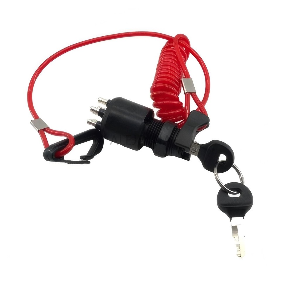 Aus Metall und robustem Kunststoff gefertigt, hält dieser Schalter den harten Bedingungen auf dem Wasser problemlos stand. Die rote Sicherheitsleine ist 125 cm lang und sorgt dafür, dass der Schlüssel nicht verloren geht - superpraktisch!