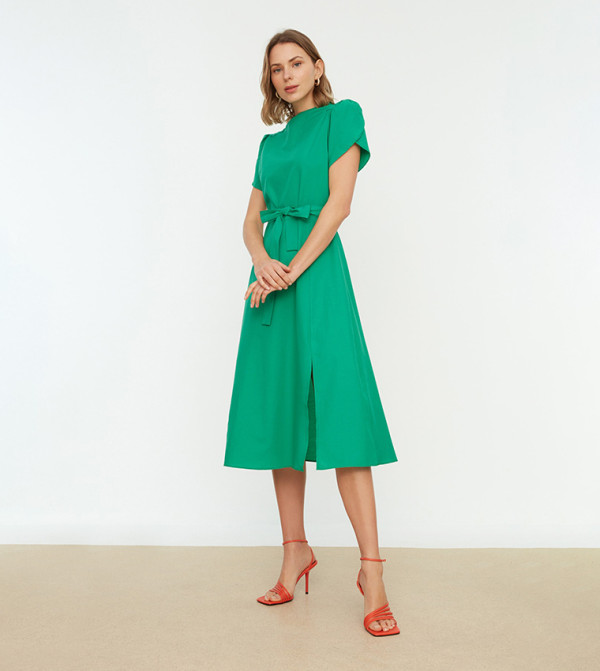 Wow, dieses Trendyol Kleid ist ja mal richtig schön! In einem tollen Grünton und mit süßem Blumenmuster - einfach perfekt für den Frühling und Sommer. Das A-Line Schnittmodell steht wirklich jeder Figur und der Wickelschnitt sorgt für eine tolle Passform. Aus 100% Polyester, also pflegeleicht und bügelfrei - ideal für den Alltag. Perfekt für Casual Anlässe wie Stadtbummel, Dates oder einfach nur zum Chillen mit Freunden. Wenn du zwischen den Größen liegst, nimm einfach eine Nummer größer - dann sitzt es garantiert bequem. Trendyol übersetzt die neuesten Modetrends in tragbare Outfits, die sich jeder leisten kann. Einfach anziehen und du fühlst dich sofort wohl in deiner Haut. Kombinierbar mit Sandalen, Sneakers oder Stiefeletten - je nachdem, wo du hinwillst. Ein echter Allrounder für deinen Kleiderschrank, der nie langweilig wird!