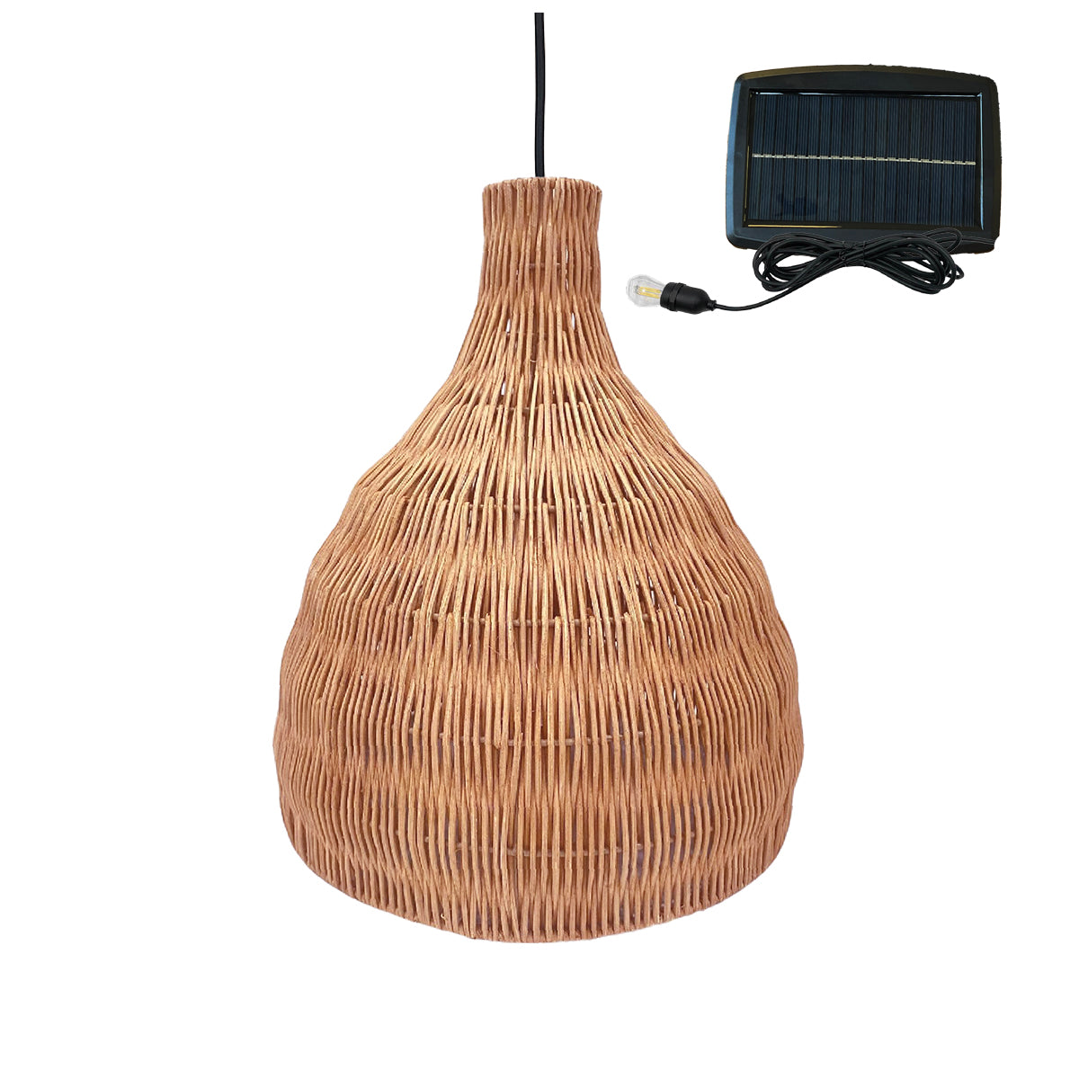 Boho-Charme für deine Terrasse! Diese Lumisky Hängeleuchte mit natürlichem Jute-Schirm bringt gemütliches Flair in deinen Garten. Maße: 62,5x52,5x14cm.