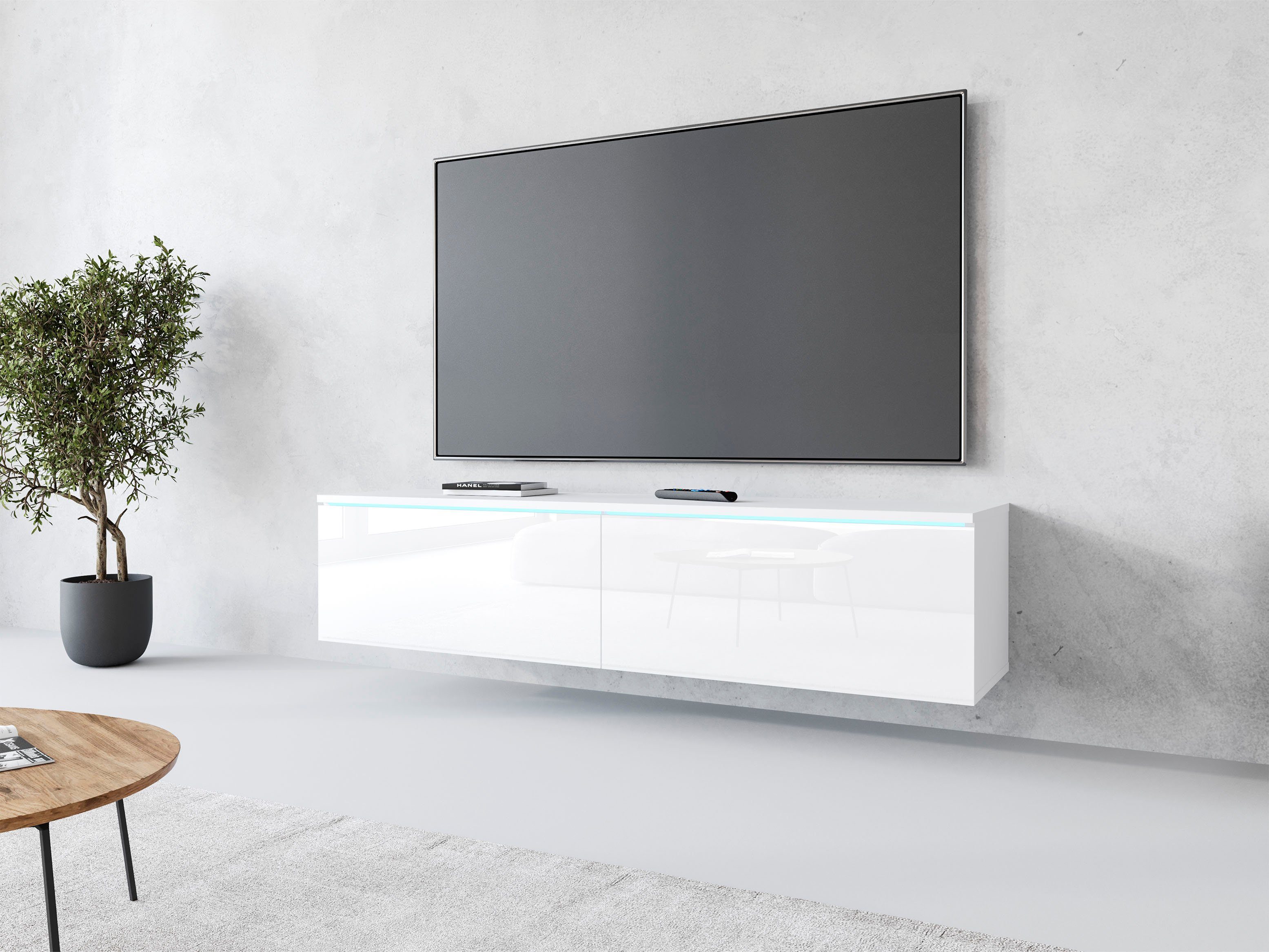 • YINXSLO TV Schrank Hängend 180 Cm Weiß - Kautschukholz Lowboard Mit Schubladen