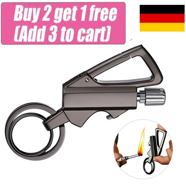 Immer Feuer dabei! Dieser coole Schlüsselanhänger sieht nicht nur gut aus in Silber, sondern ist auch ein voll funktionsfähiges Feuerzeug. Einfach am Schlüsselbund befestigen und du hast immer eine Feuerquelle parat - ob für die Kerze zu Hause, den Grill beim Camping oder im Notfall. Das Besondere: Es ist nachfüllbar mit Benzin oder Kerosin (nicht im Lieferumfang) und hält über 1.000 Anzündungen durch. Die robuste Legierung hält was aus, und das integrierte Multitool mit Flaschenöffner macht es noch praktischer. Perfekt für Outdoor-Aktivitäten wie Angeln, Wandern oder Camping, aber auch als Notfall-Ausrüstung im Auto. Ein super Geschenk für Abenteurer, Prepper oder einfach alle, die praktische Dinge mögen. Einfach, clever und immer dabei - was will man mehr?