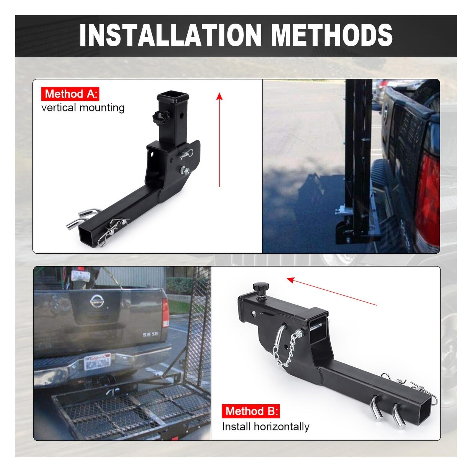 Ob Boot, Wohnwagen oder schwerer Anhänger - diese verstellbare Anhängerkupplung meistert bis zu 5000 lbs (ca. 2268 kg) Zuggewicht! Aus starkem, geschmiedetem Stahl gefertigt und mit einer schwarzen Pulverbeschichtung versehen, ist sie extrem langlebig und rostbeständig. Der Clou: Die Höhe lässt sich stufenlos von 4 1/2 Zoll bis 10 1/2 Zoll anpassen. So gleichst du mühelos Höhenunterschiede zwischen Zugfahrzeug und Anhänger aus. Passt für alle 2-Zoll-Empfänger an LKWs, Wohnmobilen oder Autos. Einfach montieren und schon kann die Fahrt losgehen - sicher und stabil.