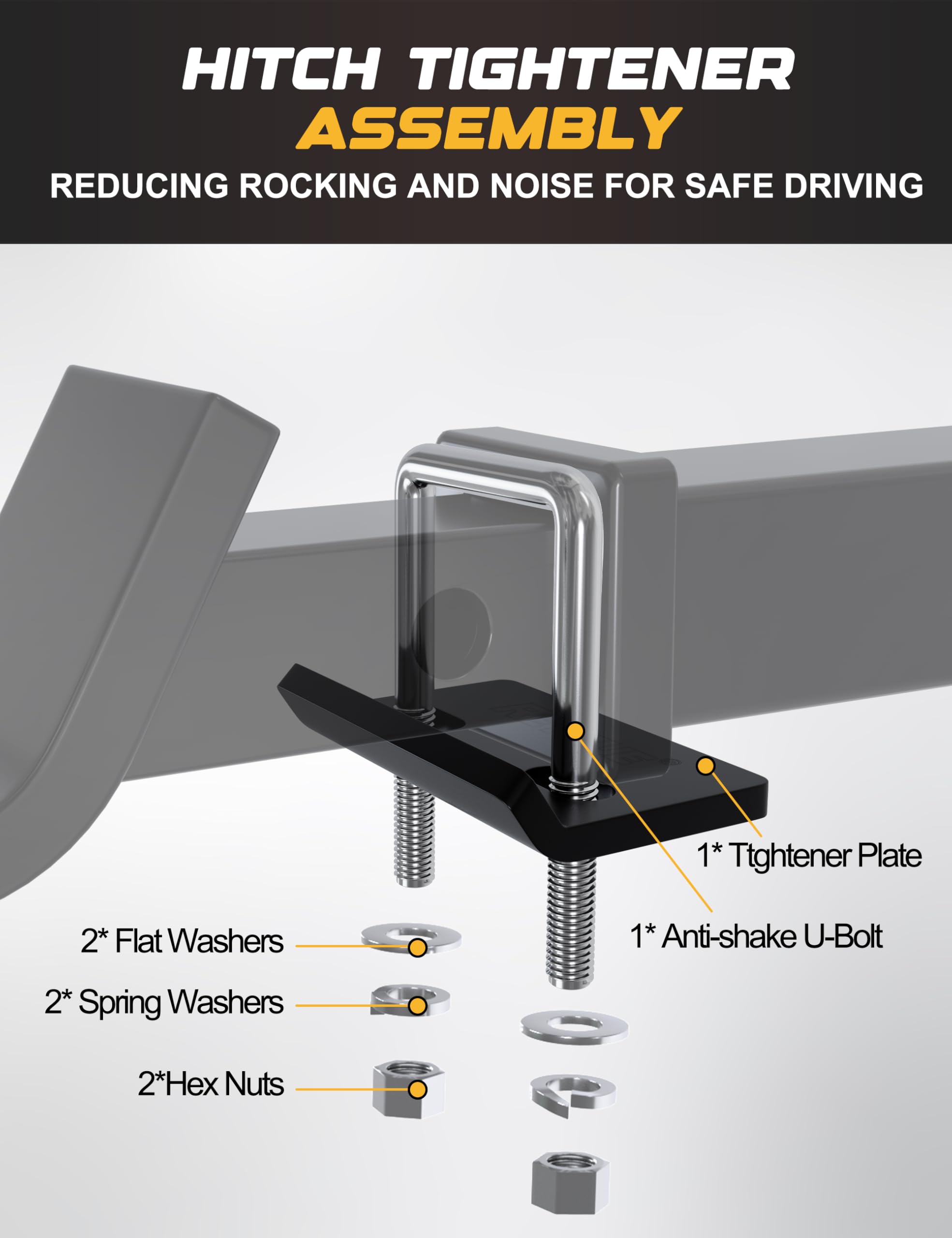 Genervt von rasselnden Anhängerkupplungen? Der RETRUE Anhängerkupplungsspanner ist die Lösung! Passt für 3,2 cm (1,25 Zoll) und 5,1 cm (2 Zoll) Kupplungen - also für fast alle Fahrzeuge. Die robuste U-Bolzen-Konstruktion mit Gummibeschichtung schützt vor Kratzern und Rost. Einfach montieren: Rohr einsetzen, Platte anbringen, Muttern festziehen - fertig! Reduziert lästiges Gerassel bei Fahrradträgern, Anhängern oder Gepäckträgern. Macht deine Fahrten einfach viel ruhiger. Aus pulverbeschichteter Stahlplatte für maximale Haltbarkeit. Ein echter Game-Changer für alle, die regelmäßig Anhänger nutzen!