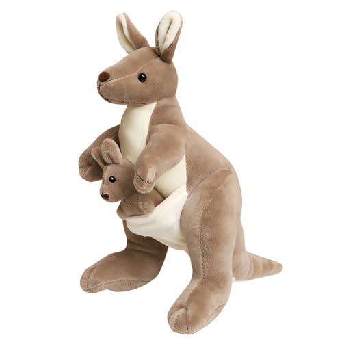 Oh wie süß! Dieses bezaubernde Känguru-Plüschtier mit seinem Baby im Beutel erobert sofort jedes Herz. Mit 28cm Größe ist es perfekt für kleine Hände - nicht zu groß, nicht zu klein. Die großen Kulleraugen und die niedlichen Ohren machen es einfach unwiderstehlich. Besonders liebevoll: Das Känguru-Baby schaut neugierig aus Mamas Beuteltasche heraus! Hergestellt aus hochwertigem, weichem Plüschmaterial und mit PP-Baumwolle gefüllt, fühlt sich das Kuscheltier angenehm weich an und kratzt nicht. Perfekt zum Kuscheln beim Einschlafen, als treuer Begleiter unterwegs oder als niedliche Deko fürs Kinderzimmer. Die robuste Verarbeitung sorgt dafür, dass das Plüschtier auch wildem Herumtollen standhält. Ein ideales Geschenk zu Geburtstag, Weihnachten oder einfach so - für Jungen und Mädchen gleichermaßen geeignet. Dieses Känguru-Duo wird schnell zum neuen Lieblingskuscheltier!