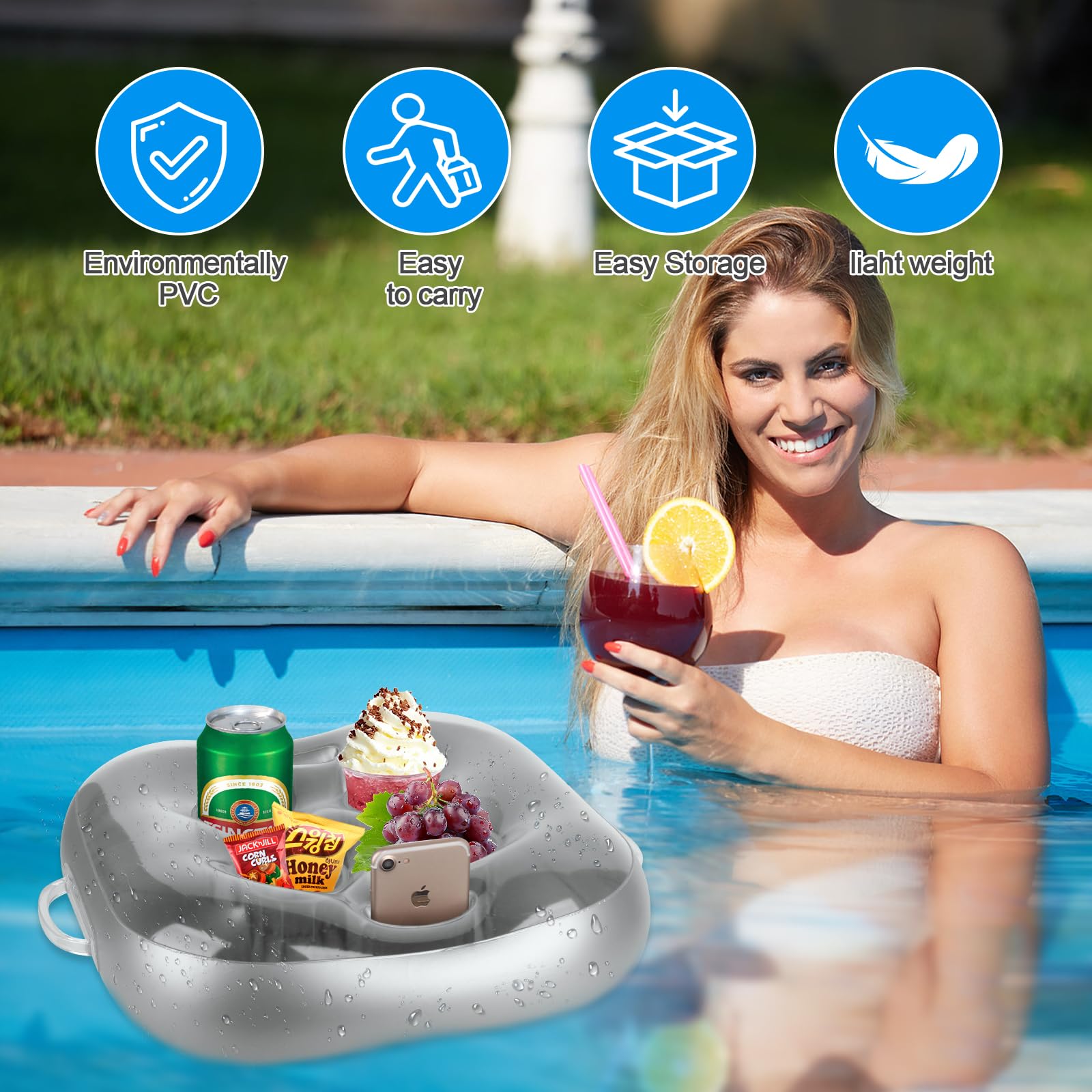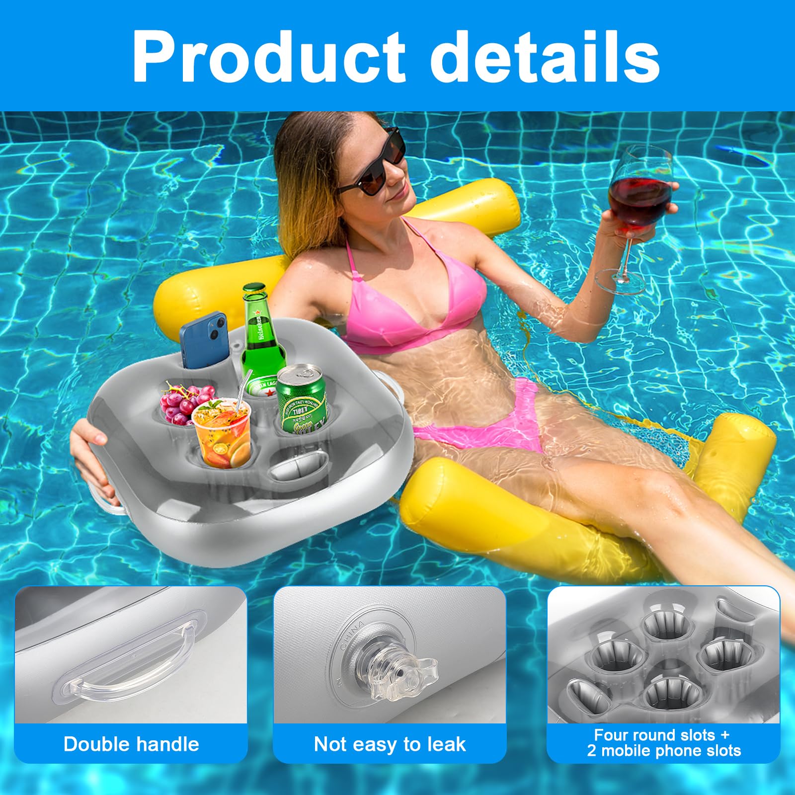 Stell dir vor: Du liegst im Pool und musst nicht mal raus, um dein Getränk zu holen! Dieser aufblasbare Getränkehalter mit 6 Löchern ist der Hit für jede Sommerparty. Aus robustem PVC macht er auch bei wilden Pooltagen nicht schlapp. Vier Löcher sind für Getränke reserviert, zwei für dein Smartphone - so bleibst du immer in Reichweite, ohne dass dein Handy nass wird. Mit 47x45x13cm ist er groß genug für mehrere Flaschen und Snacks. Das beste: Er kippt nicht um, selbst mit schweren Champagnerflaschen! In wenigen Minuten aufgeblasen und schon kann die Poolparty losgehen. Perfekt für den Gartenpool, Strandausflüge oder Grillpartys. Einfach aufblasen, ins Wasser lassen und den Sommer genießen - ohne ständiges Aus-dem-Pool-steigen!