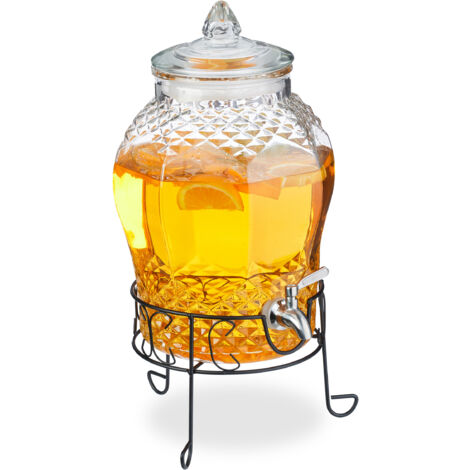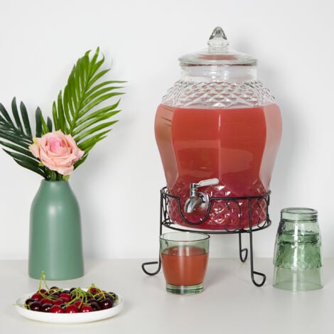 Perfekt für deine nächste Party! Dieser Glas-Getränkespender mit 5 Litern Fassungsvermögen ist ein echter Allrounder für Saft, Eistee, Bowle oder sogar Bier. Der Edelstahl-Zapfhahn ist super praktisch - einfach aufdrehen und das Getränk fließt ohne Kleckern. Das lebensmittelechte Glas ist extra dickwandig und damit super robust. Der schwarze Blumenständer sieht nicht nur gut aus, sondern gibt dem Spender auch einen stabilen Stand. Ob Geburtstag, Gartenparty, Hochzeit oder einfach nur ein gemütlicher Abend mit Freunden - mit diesem Spender wird das Servieren der Getränke zum Kinderspiel. Und nach der Party ist die Reinigung kein Problem: Einfach mit warmem Wasser (nicht über 50°C!) ausspülen. Mach deine Feier zu einem unvergesslichen Event mit diesem stylischen Getränkespender!