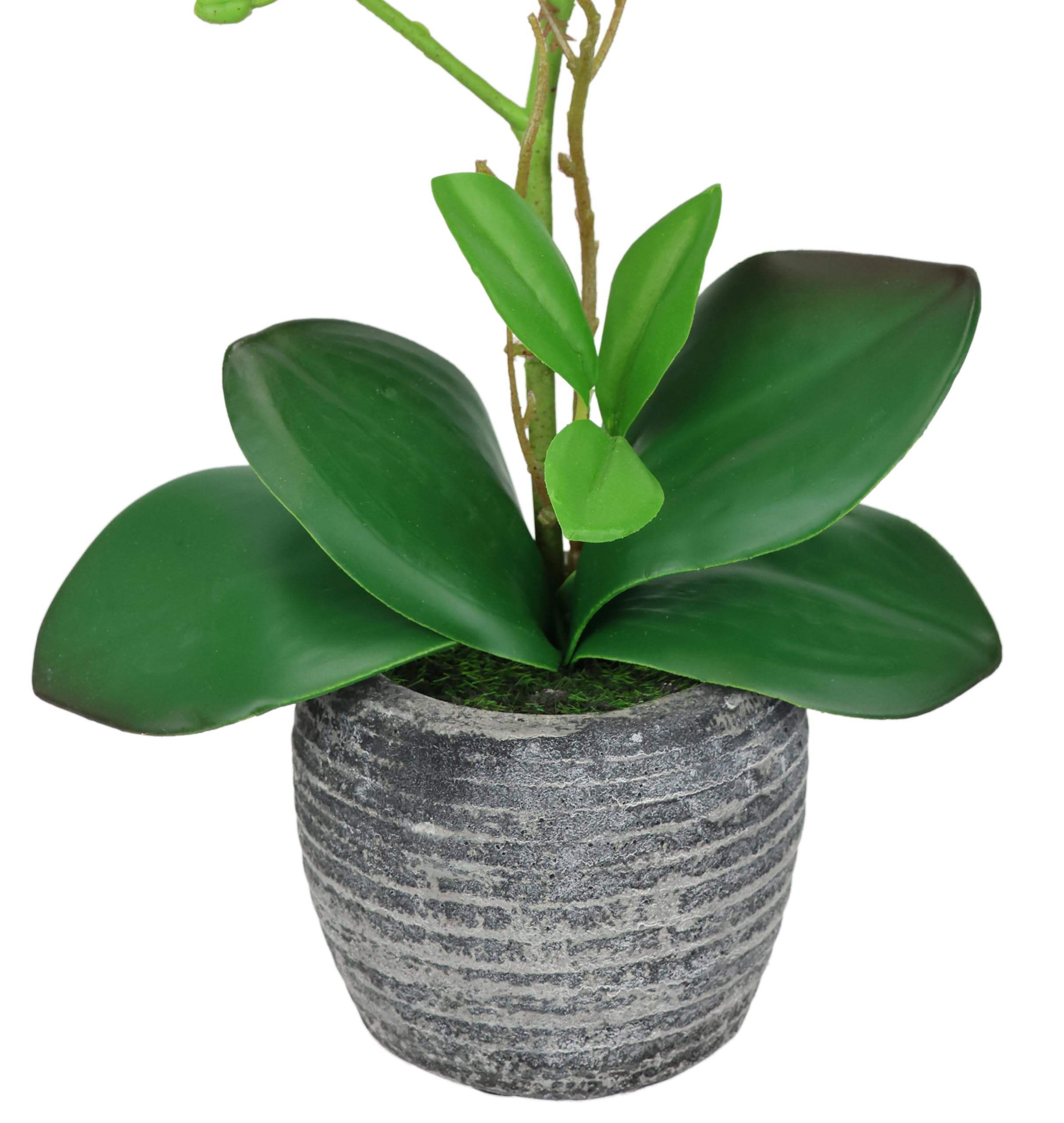 Diese künstliche Orchidee sieht so echt aus, dass jeder denkt, sie wäre lebendig! Die Phalaenopsis im schwarzen Topf hat weiße und rosafarbene Blüten, Knospen und grüne Blätter - alles täuschend echt nachgemacht. Mit 30cm Höhe passt sie perfekt auf Sideboard, Fensterbank oder Wohnzimmertisch.