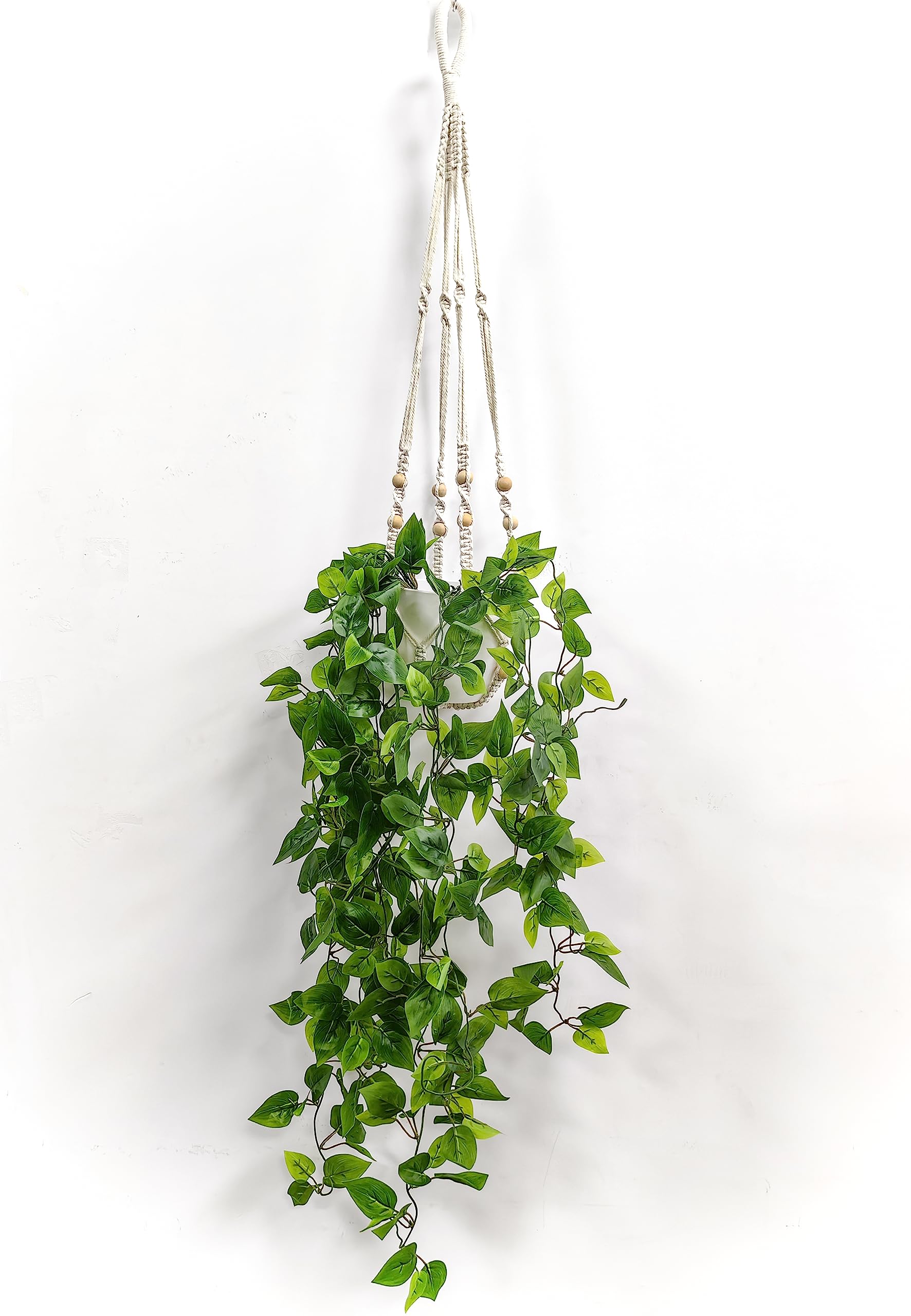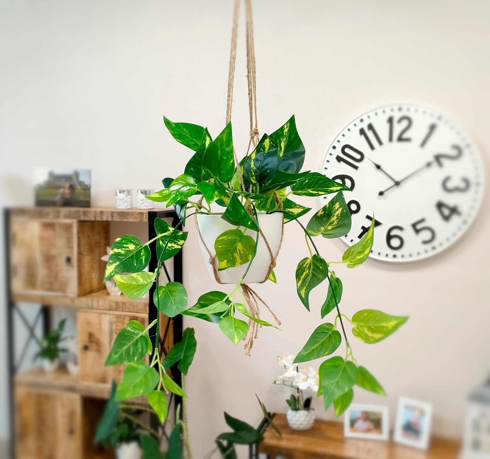Boah, diese Efeu-Ampel sieht ja mega aus! Die künstliche Pflanze steckt in einem richtig edlen Keramiktopf - kein billiger Plastikquatsch. Und die Makramee-Aufhängung mit den Holzperlen gibt dem ganzen diesen tollen Boho-Look, der gerade voll im Trend liegt. Mitgeliefert wird sogar ein Deckennagel, damit du die Ampel sicher aufhängen kannst. Das Beste: Die Pflege ist quasi nonexistent! Kein Gießen, kein Düngen, keine Schädlinge - die Pflanze sieht einfach immer perfekt aus. Egal ob im Wohnzimmer, Bad, Schlafzimmer oder im dunklen Büro - überall bringt sie frisches Grün in den Raum. Besonders da, wo echte Pflanzen nicht wachsen wollen, ist diese Kunstvariante die Rettung! Wenn du nicht 100% zufrieden bist, gibt's sogar bis zu 2 Jahre Geld zurück - risikofreier geht's kaum. Einfach aufhängen und über den neuen Blickfang freuen! Sieht so echt aus, dass deine Gäste bestimmt zweimal hinschauen werden.