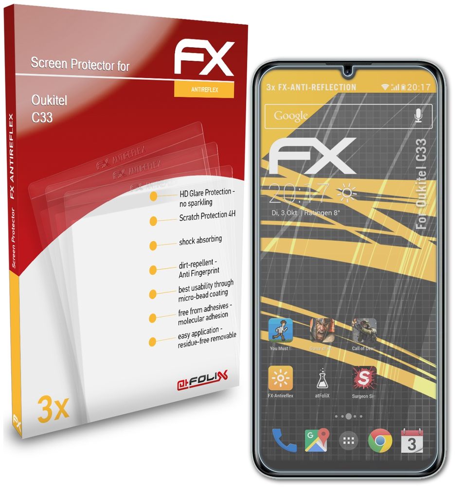 Maximaler Schutz für dein Doogee T40! Diese atFoliX Panzerfolie ist entspiegelt, stoßdämpfend und kratzfest (3H Härte). Reduziert Spiegelungen und Fingerabdrücke. Einfache, blasenfreie Montage dank Trockenhaftung. Im Set: 2 Folien, Reinigungstuch, Rakel und Montageanleitung. Made in Germany Qualität. Schützt dein Display vor Stürzen und Kratzern ohne die Bedienung zu beeinträchtigen. Einfach anbringen und dein Smartphone ist optimal geschützt!