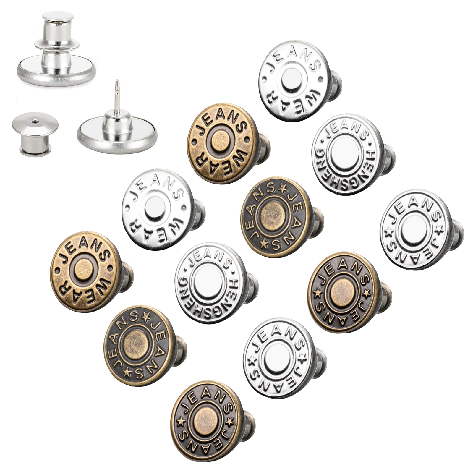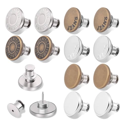 Boah, ist das praktisch! Diese Jeansknöpfe kannst du einfach so aufstecken - komplett ohne nähen! Perfekt wenn mal wieder ein Knopf abgegangen ist oder du deine Hose enger machen willst. Einfach Knopf und Gegenstück auf den Stoff drücken - klick - und schon sitzt es! Das 12-teilige Set hat verschiedene coole Farben wie Antikkupfer, Silber und Rotgussschwarz, da ist für jede Jeans was dabei. Jeder Knopf ist aus robustem Metall und hält richtig was aus - kein Rost, kein Brechen! Super für unterwegs, im Urlaub oder einfach für zu Hause. Du kannst die Teile auch wieder abmachen und wiederverwenden - total umweltfreundlich! Nicht nur für Jeans geeignet, sondern auch für Overalls, Jacken oder sogar Taschen. Mit 17mm Durchmesser die perfekte Größe für die meisten Hosen. Kein lästiges Fädeln mehr, keine Nadelstiche - einfach draufdrücken und fertig! Auch super wenn du mal schnell was ändern willst ohne Nähmaschine. Einfach genial dieses Set!