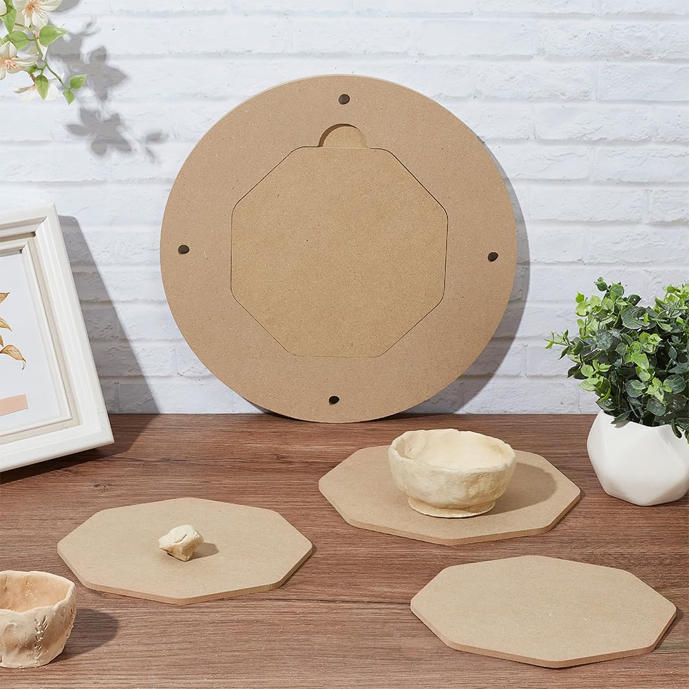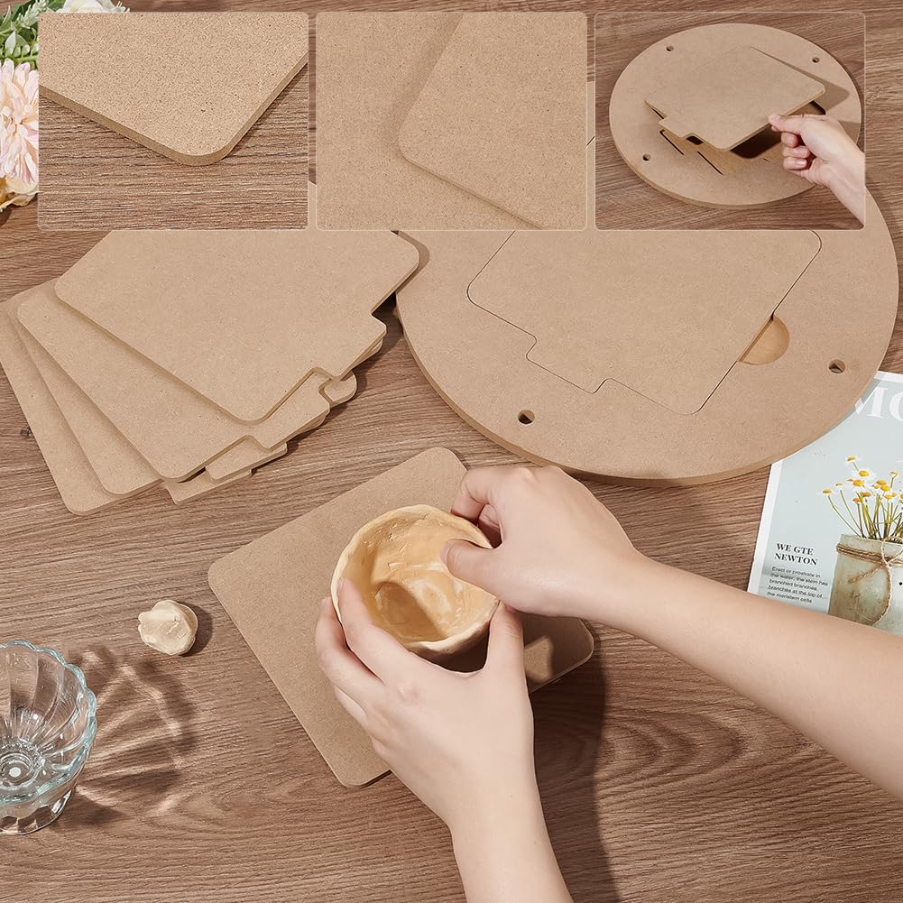 Perfekt für Töpfer-Fans! Dieses PandaHall Set hat 6 quadratische Platten (18,3x18,3cm) und 1 große runde Platte (30cm Durchmesser) aus MDF-Holz. Die Platten passen auf die Töpferscheibe - du kannst dein Kunstwerk trocknen lassen und einfach abnehmen. Glatte Oberfläche, leicht zu reinigen. Ideal für zuhause, Studio oder Unterricht. Die quadratischen Platten geben der runden Platte stabilen Halt. Einfach einsetzen und entfernen ohne Werkzeug. Für Anfänger und Profis - mach deine Töpfer-Projekte einfacher und organisiert!