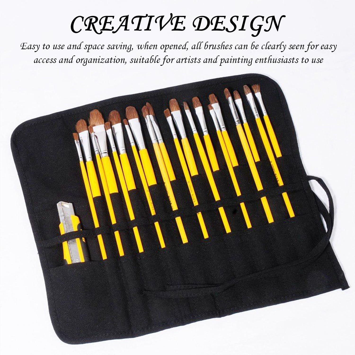 Ordnung für kreative Köpfe! Dieses praktische Rollmäppchen aus robustem Canvas und Bambus hält all deine Stifte, Pinsel und Zeichenutensilien perfekt organisiert. Mit 9 Fächern für verschiedene Größen - ob dicke Pinsel oder feine Stifte, alles hat seinen Platz. Einfach aufrollen, zubinden und in jede Tasche stecken. Super für unterwegs zur Kunstschule, zum Malen im Freien oder als Ordnungssystem auf dem Schreibtisch. Das atmungsaktive Vliesmaterial schützt deine Utensilien vor Beschädigungen. Endlich kein Chaos mehr in der Federmappe - alles griffbereit und sicher verstaut!