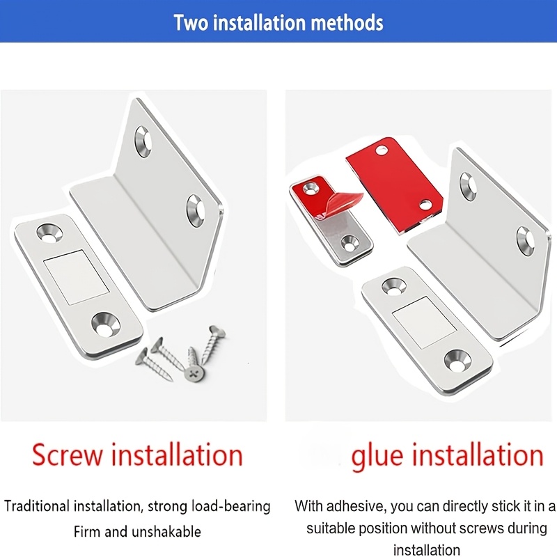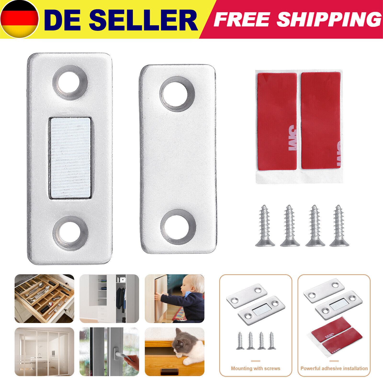Endlich schließen deine Schranktüren richtig? Diese magnetischen Türschnäpper von X-bet sind die Lösung! Mit 4,6x1,5x1,2 cm passen sie super an Schränke, Kommoden und Schubladen. Die starken Ferrit-Magnete halten bis zu 9 kg und die Edelstahl-Oberfläche ist rostfrei. Du kannst sie entweder mit dem mitgelieferten Klebeband einfach ankleben oder mit Schrauben fester montieren. Im Set findest du alles was du brauchst: 4 Magnete, 16 Schrauben, Klebeaufkleber und Stoßfänger. Einfach installieren und sich über ordentlich schließende Türen freuen!